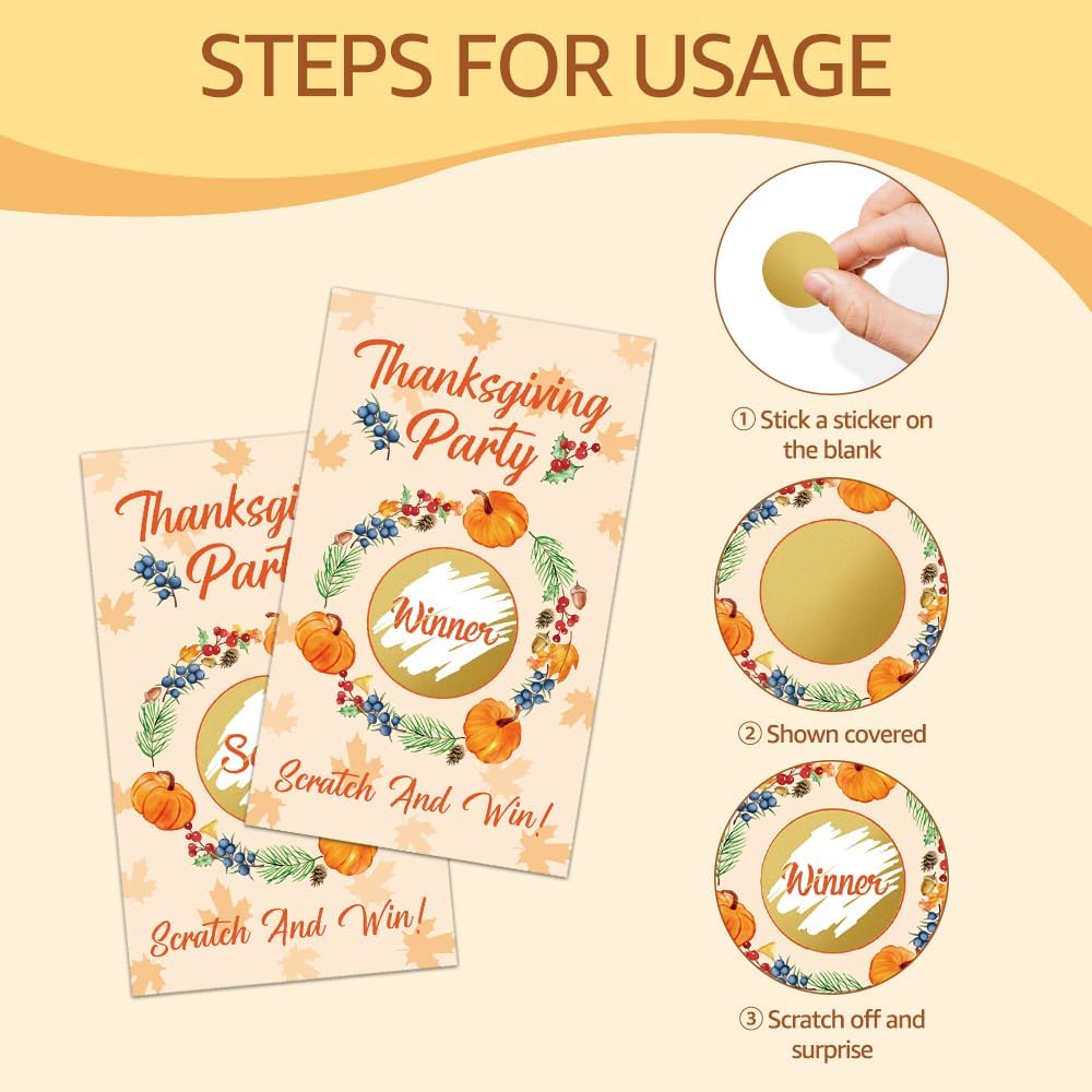 50 Pack Thanksgiving Party Patch Scratch Off Game, Funny Scratch Cards for Fall Games, Pumpkin Raffle Tickets for New Homeowner Birthday Games, Thank You Party Games