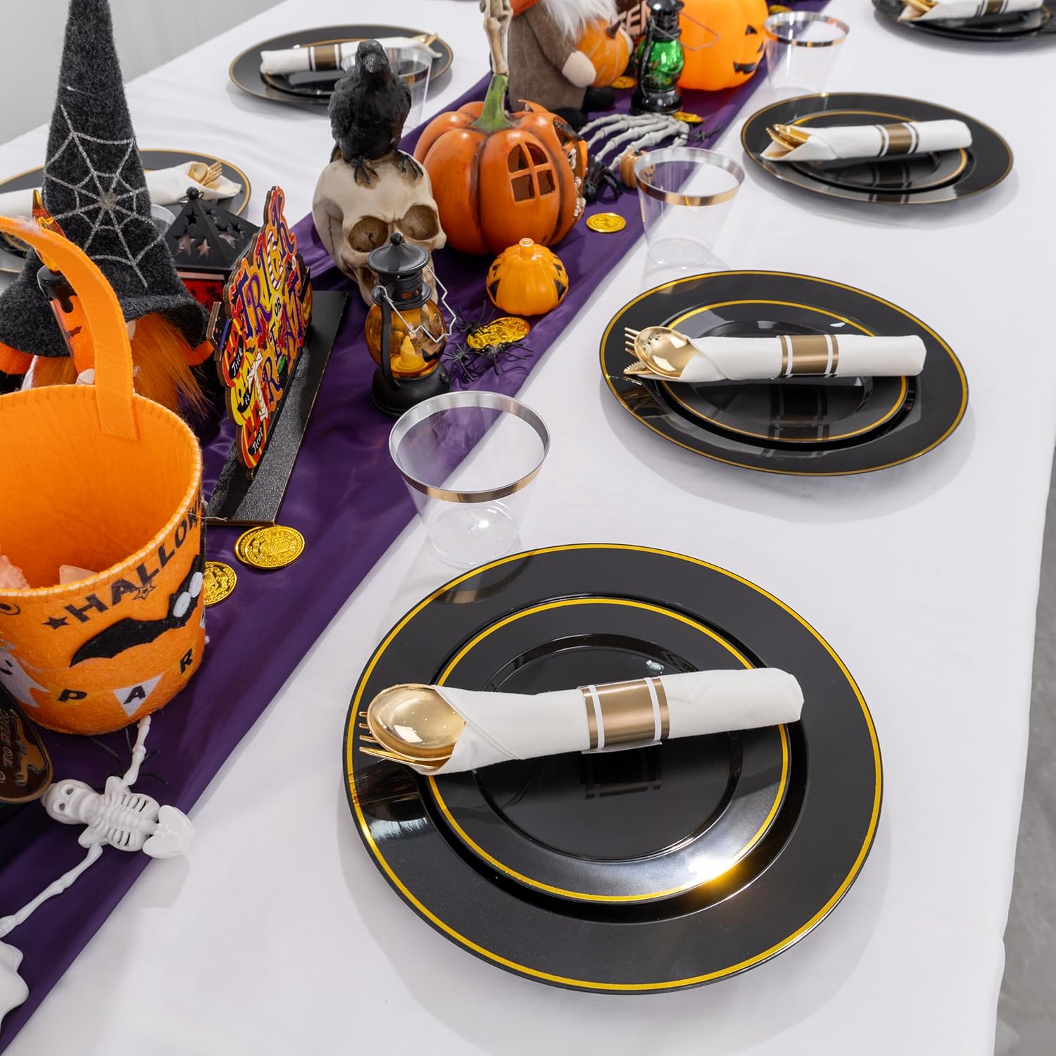 - Durable and Reliable Quality: Crafted from sturdy materials, our black and gold plates are designed to withstand heavy foods without bending or leaking. They provide a practical solution for serving meals at any gathering, from elegant weddings to festive Halloween events.