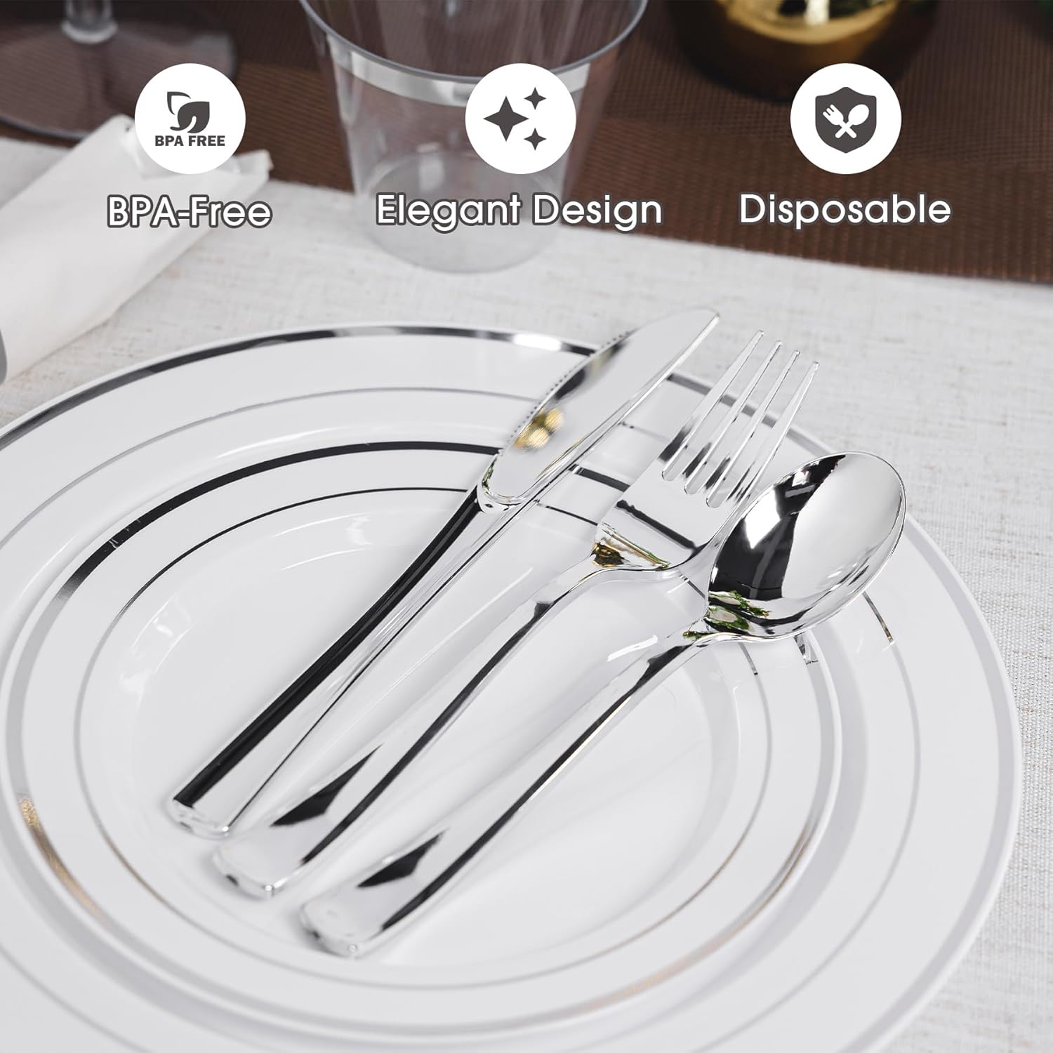 - Safe & BPA-Free Materials: Serve with confidence! Crafted from premium, food-grade plastic, these silver plastic plates and tableware are 100% BPA-free for safe use. (Hand wash if reusing; no microwave/dishwasher)