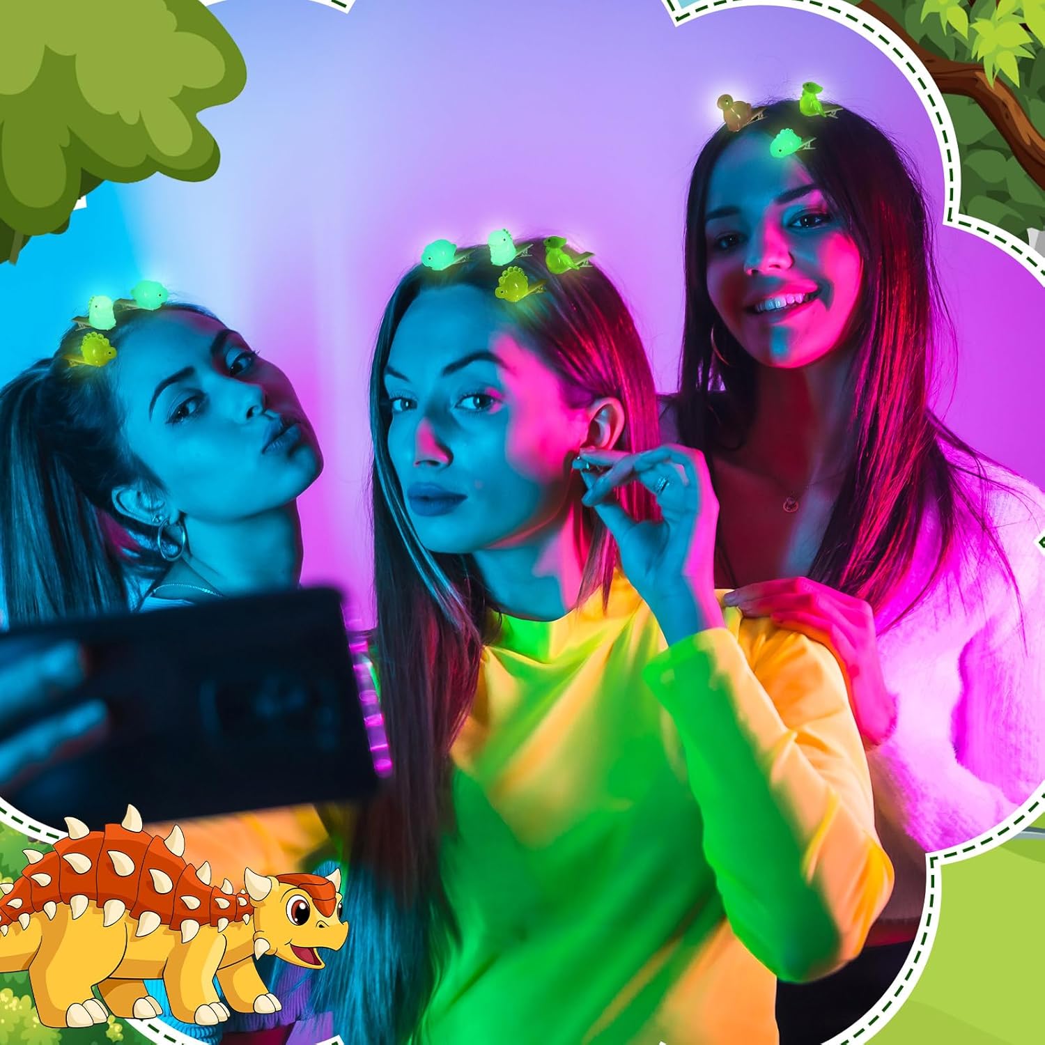 30 Pcs Mini Glow Hair Clips Girls Rave Hair Clips for Women Christmas Music Festival Holiday Party Supplies (Dinosaur)