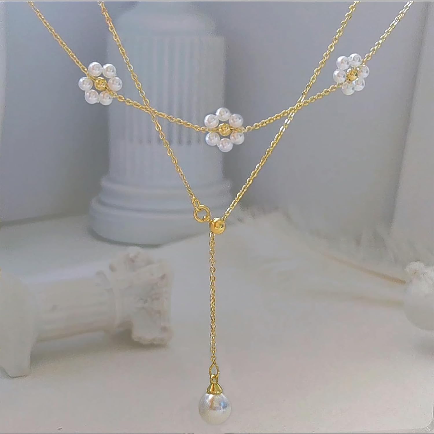 - PEARL NECKLACE FOR WOMEN: Set of satellite daisy pearl necklace and single large pearl pendant long lariat necklace. This womens pearl choker necklace is elegant, classic yet stylish.