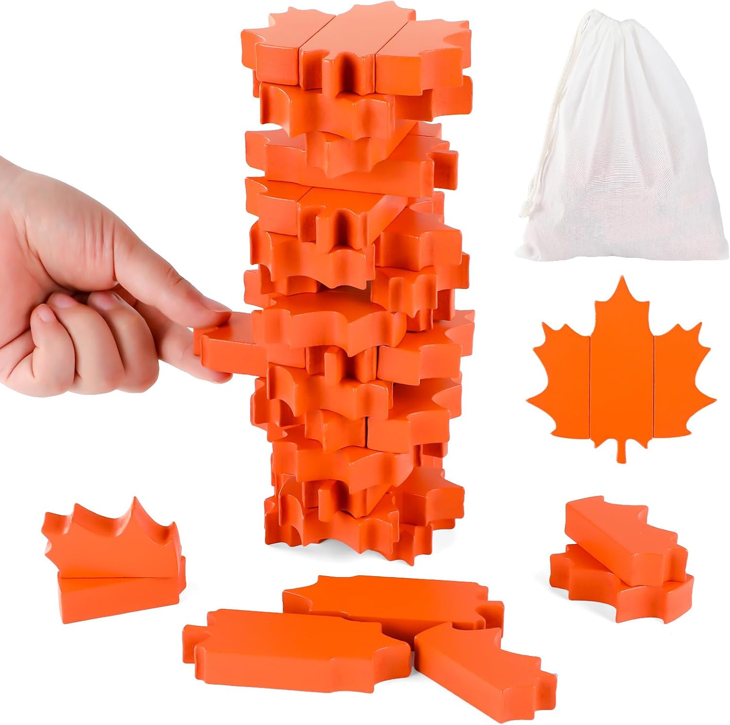 - Versatile Game for Every Occasion: From group party games with friends to relaxing weekends at home, this maple leaves balancing tower game fits every event. Great for party activities, family game nights, and even classroom brain breaks, this maple leaves-themed block tower game delivers hours of entertainment with a touch of autumnal charm.