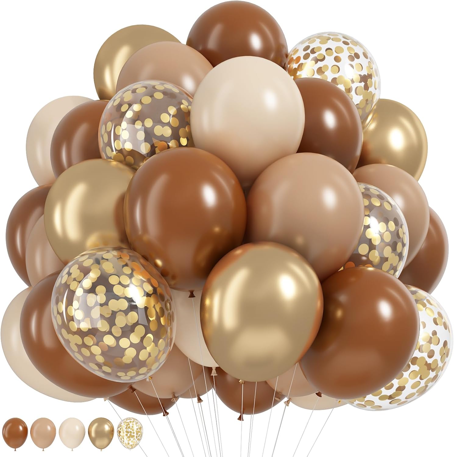 - Neutral Party Decorations: Includes 12 inch 50 pcs helium balloons with 15 pcs dark brown balloons, 15 pcs white sand balloons, 10 pcs nude double stuffed balloons, 5 pcs confetti balloons, 5 pcs metallic gold balloon and a roll white ribbon