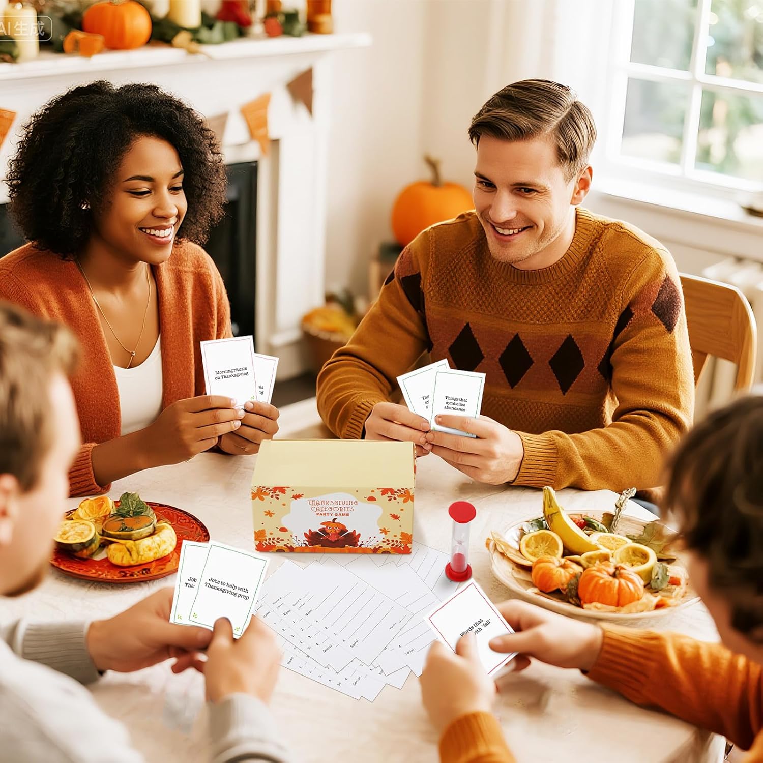 - Holiday Party Games: this Thanksgiving family game set ensures that the party activities are exciting and attracts all guests to gather around the table; Within the specified time, come up with some questions about Thanksgiving food, movies, games, music, traditions