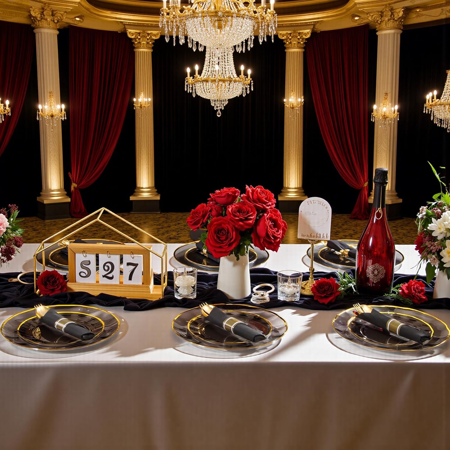 - 【Value Pack】These gold plastic silverware includes 120 gold plastic forks, 120 gold plastic spoons, and 120 gold plastic knives, 120 black napkins. Whether it's a birthday party or a wedding, the pre rolled silverware is everything you need for a perfect mealtime experience. The gold disposable silverware will totally make your guests happy at the party!