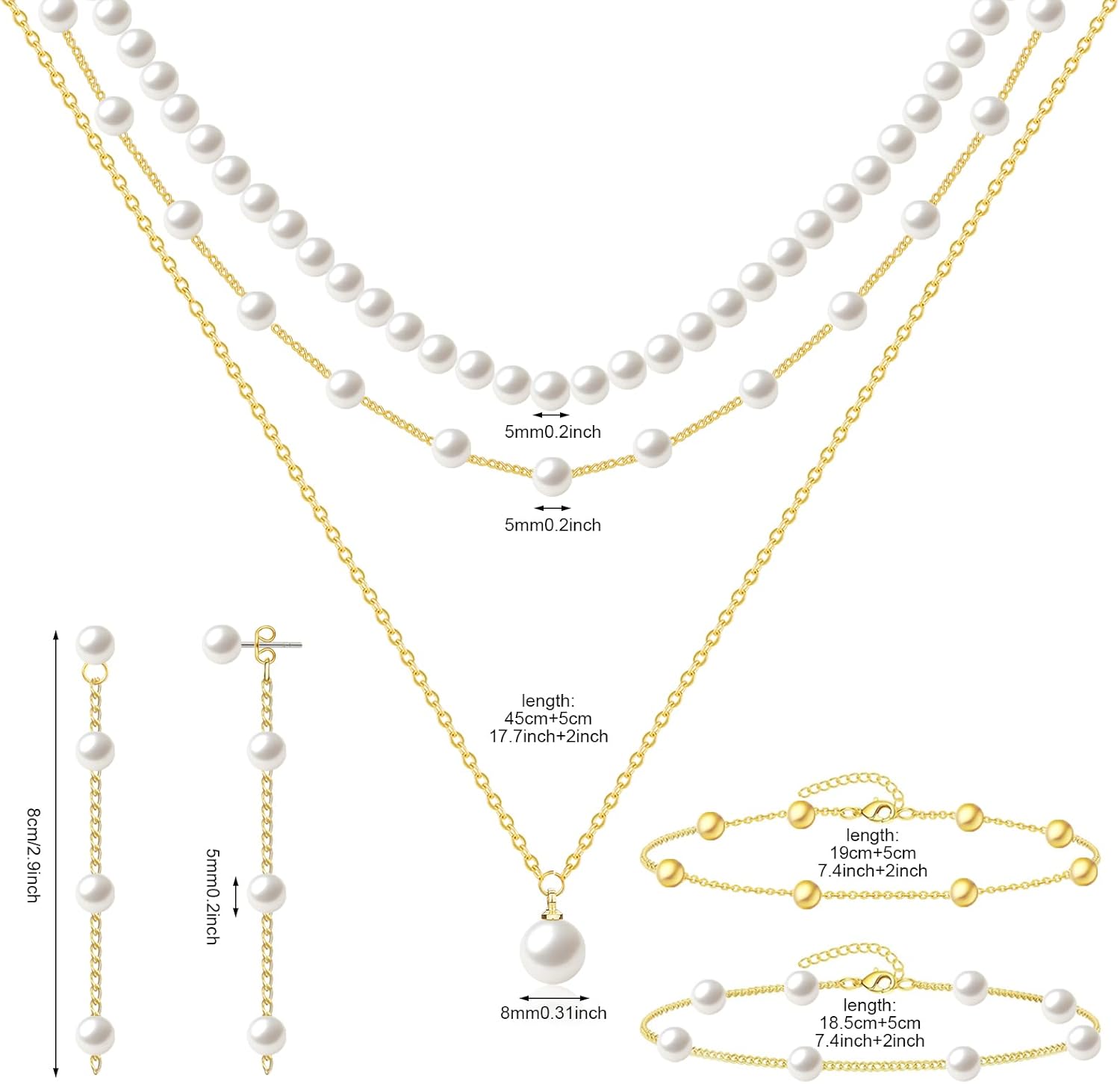 - 【JEWELRY SET】:You will recieve a necklace and earring sets for women include a layered pearl necklace, 2 pearl bracelets, a pairs of pearl earrings, one set include all to perfect matching your daily wear or theme parties, makes you looks more stylish and gorgeous.