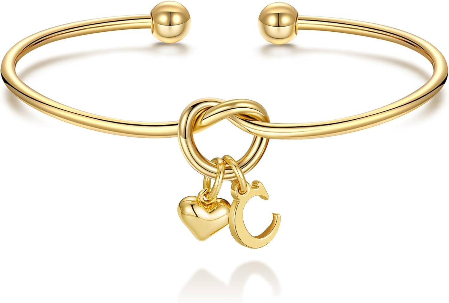 - ADJUSTABLE CUFF BANGLE : The heart-shaped initial bracelet is adjustable and suitable for wrists from small to large. A sturdy bend can be adjusted to fit your wrist size, designed specifically for wrist sizes ranging from 2.4 to 2.6 inches. Each bracelet comes with a letter and a heart pendant