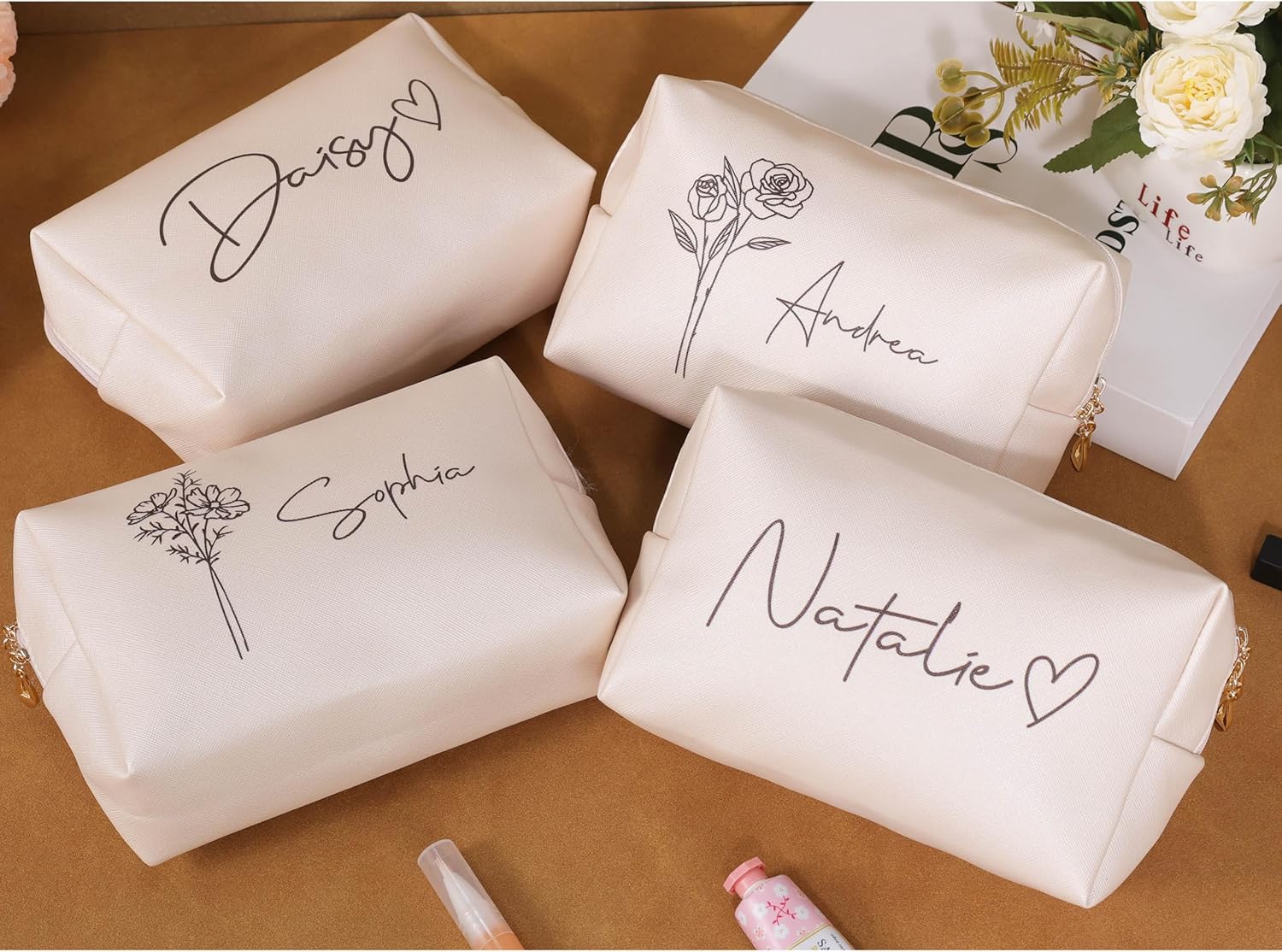 - PERFECT PERSONALIZED GIFTS: This personalized toiletry bag with name and birth flower is also Ideal for travelers, it is lightweight and easy to squeeze into a suitcase, as a skincare bag, purse, or bathroom organizer, making it perfect for business trips, vacations, and outdoor activities.