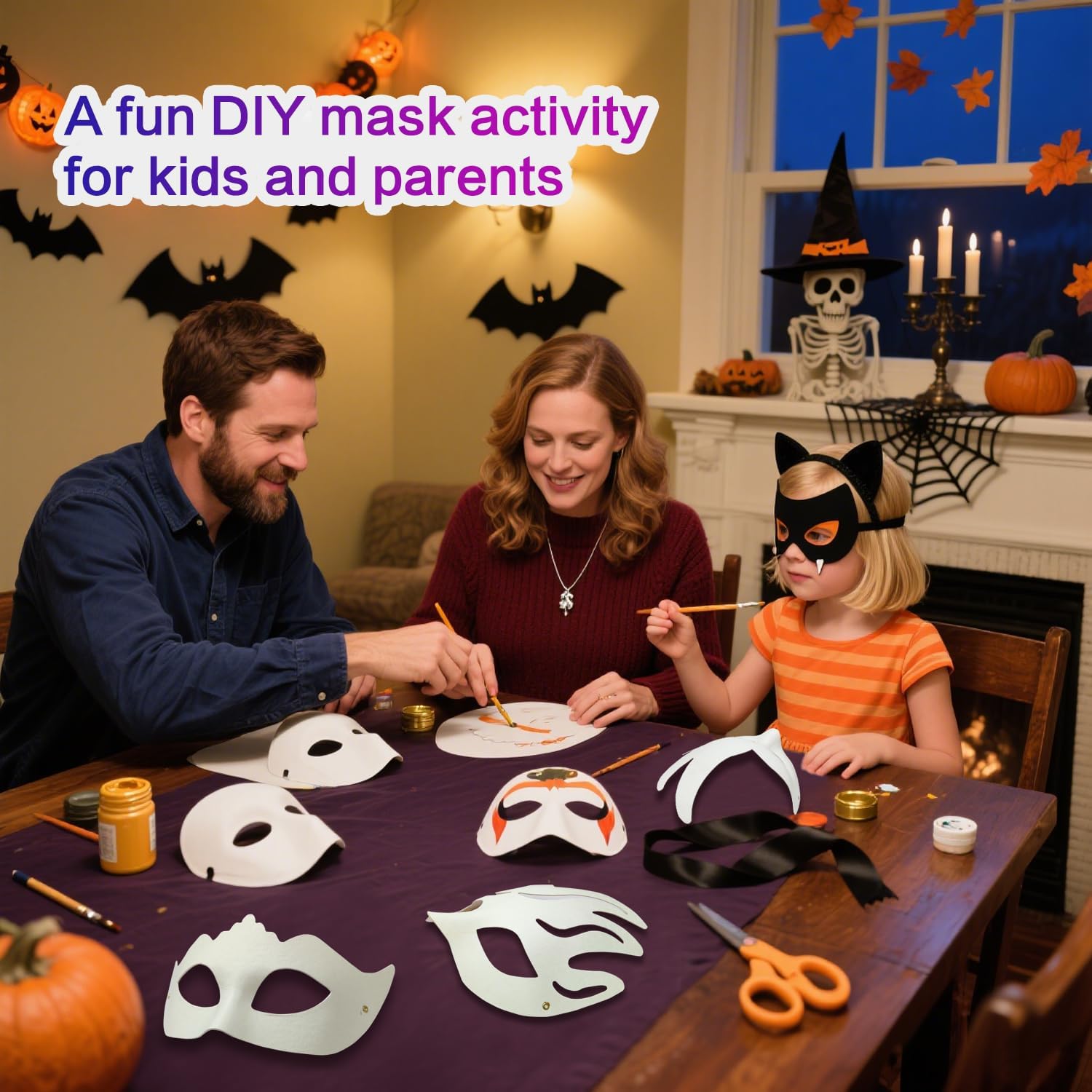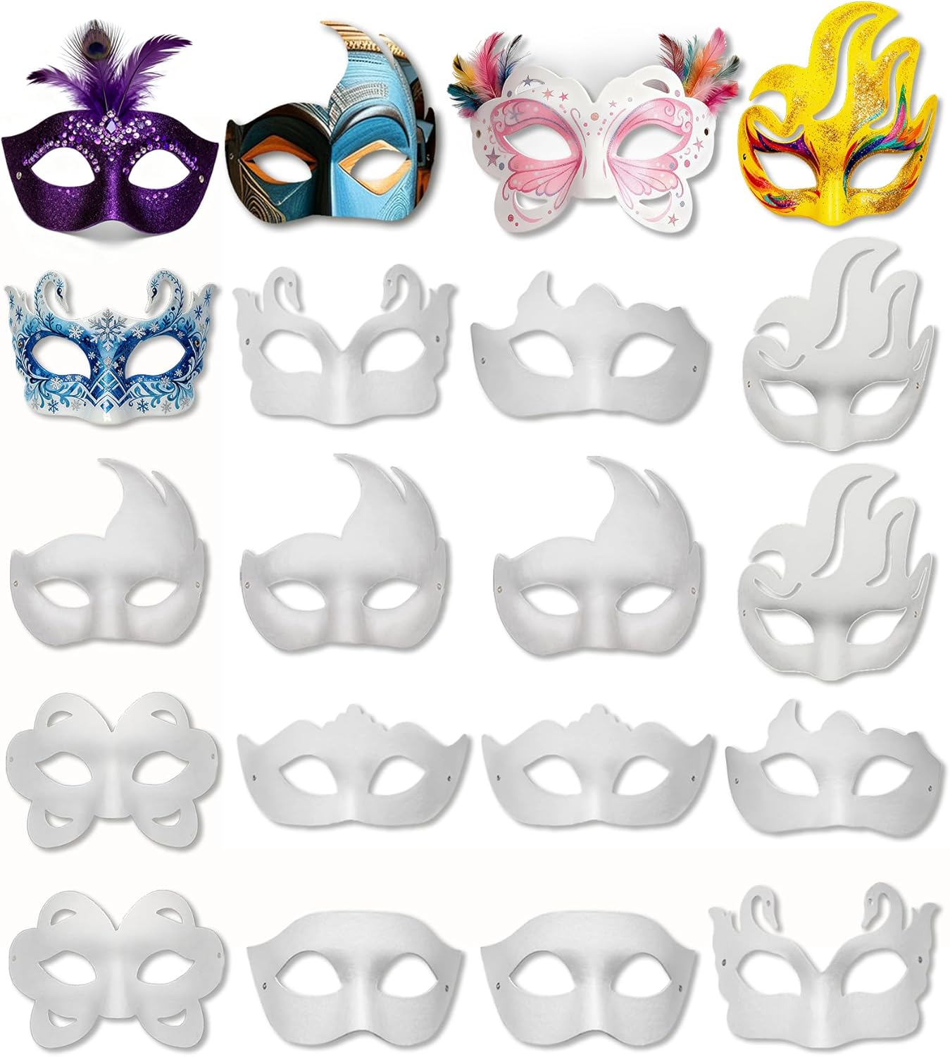 - DIY Paper Masquerade Masks: Unleash your creativity on this high-quality, sturdy white paper masks – the perfect blank masks for painting, drawing, and customizing your unique party look (great for adults and kids!).