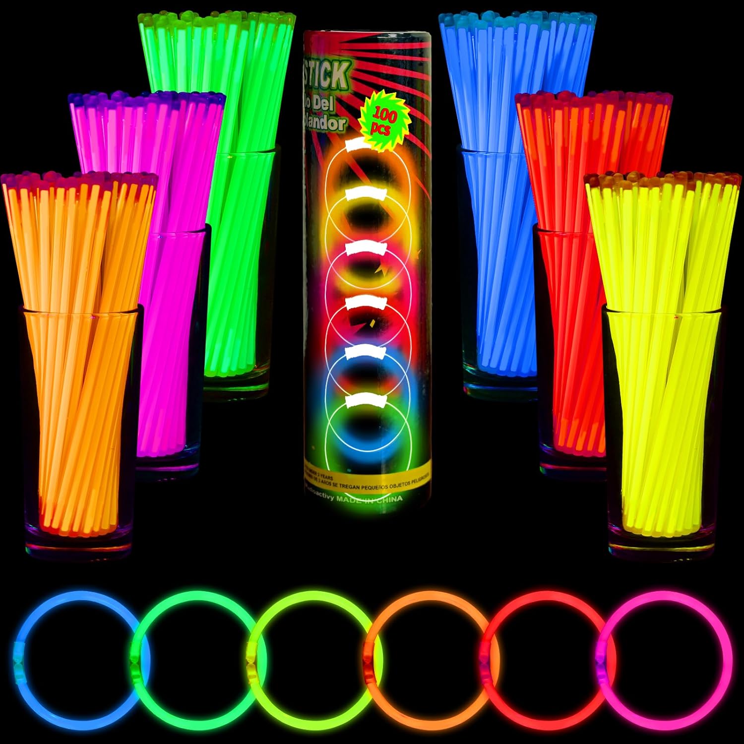 - 【 Package Included 】:100 glow sticks (in six colors) and 100 connectors. Use one connector to create a bracelet, and three connectors to create a necklace. You can also use them as party decorations and freely combine them for decoration.