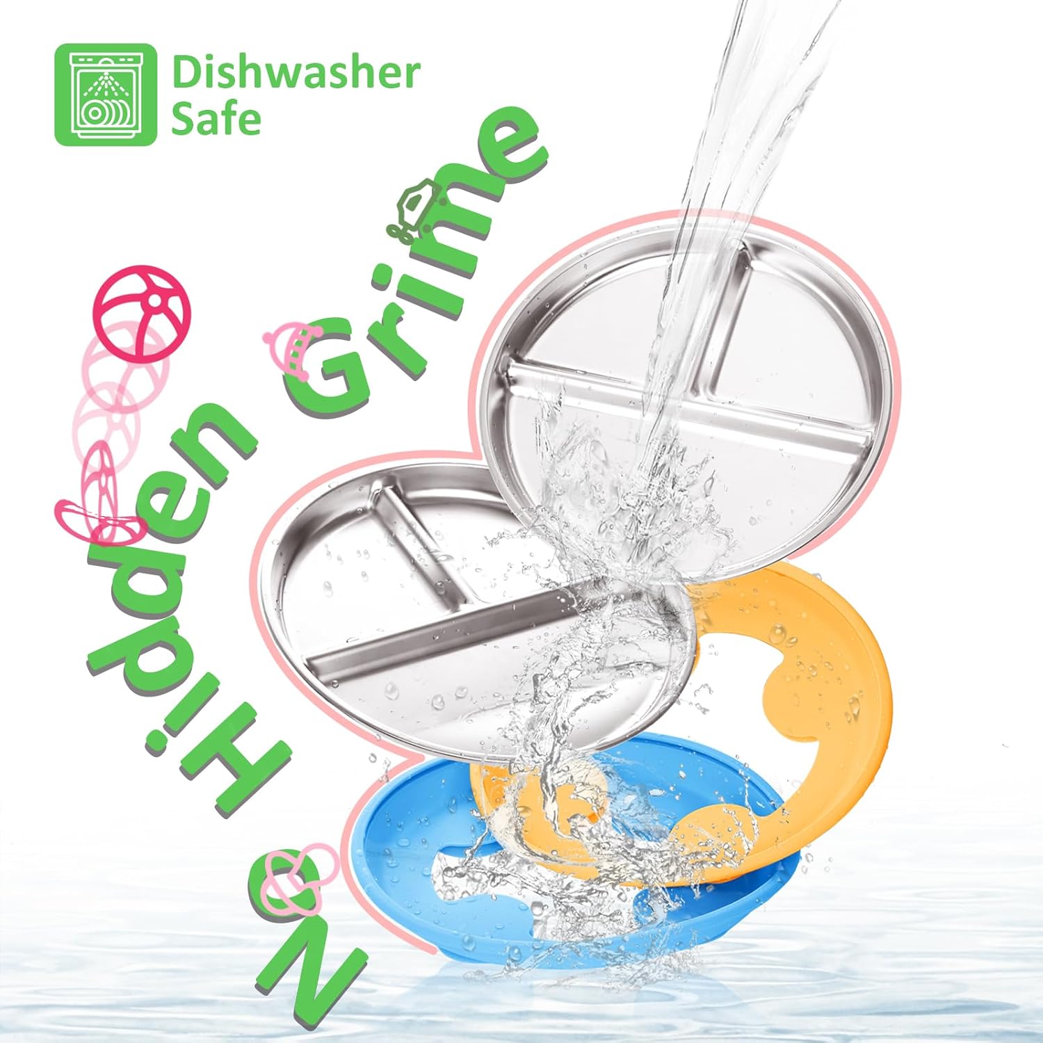 - Hassle-Free Cleaning: Resistant to food stains like carrots, the smooth stainless steel surface is easy to clean. Both the toddler plate and silicone suction sleeve are dishwasher-safe, making cleanup quick and stress-free for busy parents