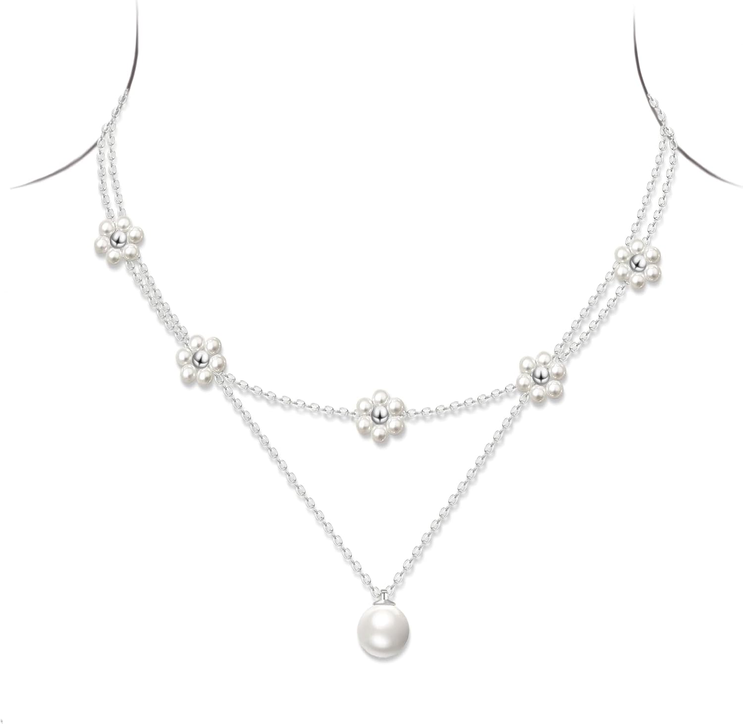 - ✿ Daisy Pearl Design: Daisy chain necklace + single large pearl pendant necklace design. Layered Pearl flower necklaces exudes vintage charm and modern flair, featuring a daisy for joy and concealed affection, enhancing attire with elegance.