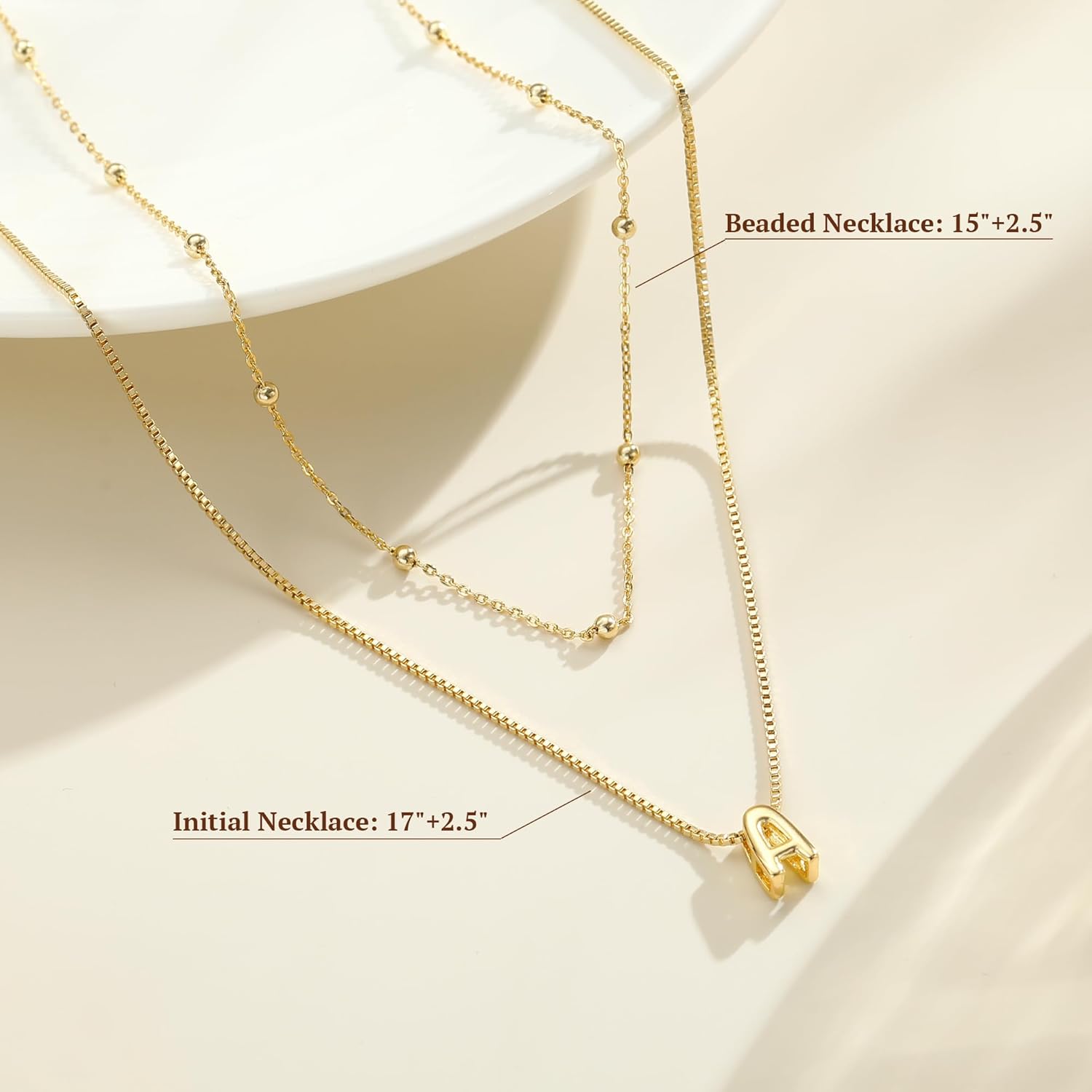- 【Adjustable Size】Length of the box chain initial necklace is 17"+2.5", and the beaded necklace is 15"+2.5". Adjustable gold necklace that fit most women teen girls, sturdy lobster clasp makes it easy to adjust the length. You can wearing alone or layering with other necklaces for a stylish look.