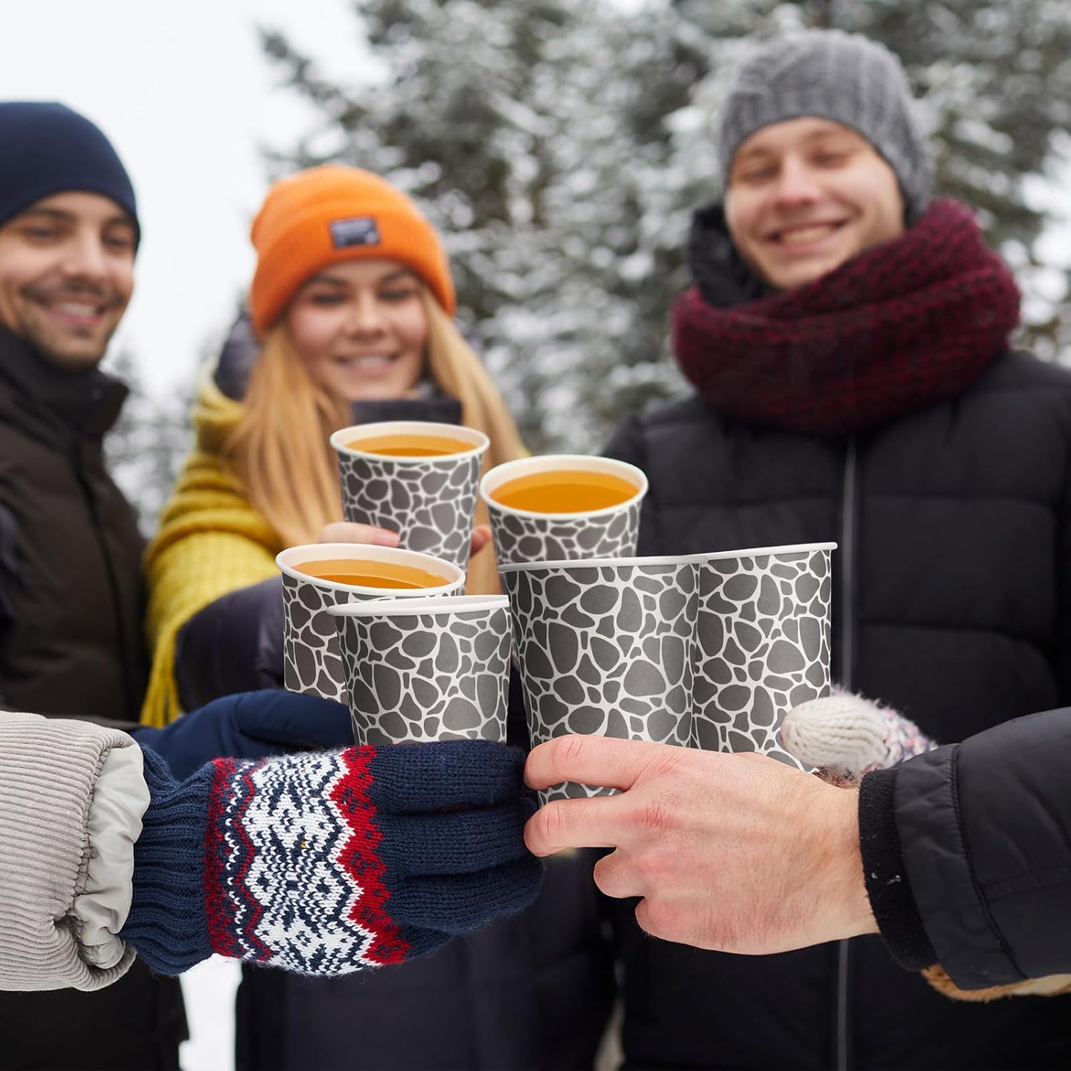 - Cobblestone Design: the coffee paper cups are printed with gray pebbles on a white background, which is stylish, giving the cups an elegant look, your guests will love it