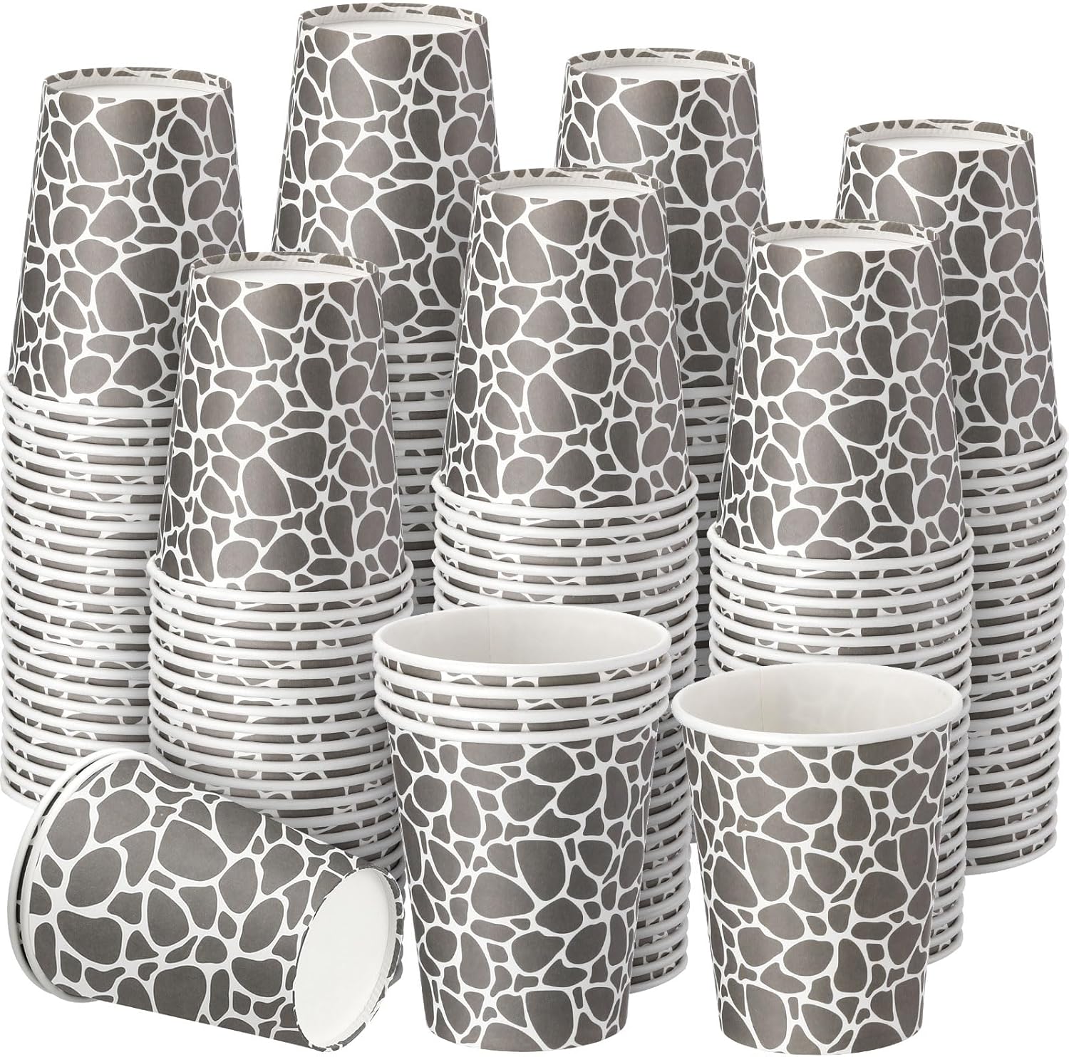 Patelai 150 Pack 9 oz Paper Disposable Coffee Cups 9 oz Geometric Hot or Cold Beverage Drinking Cup for Water Juice Coffee or Tea