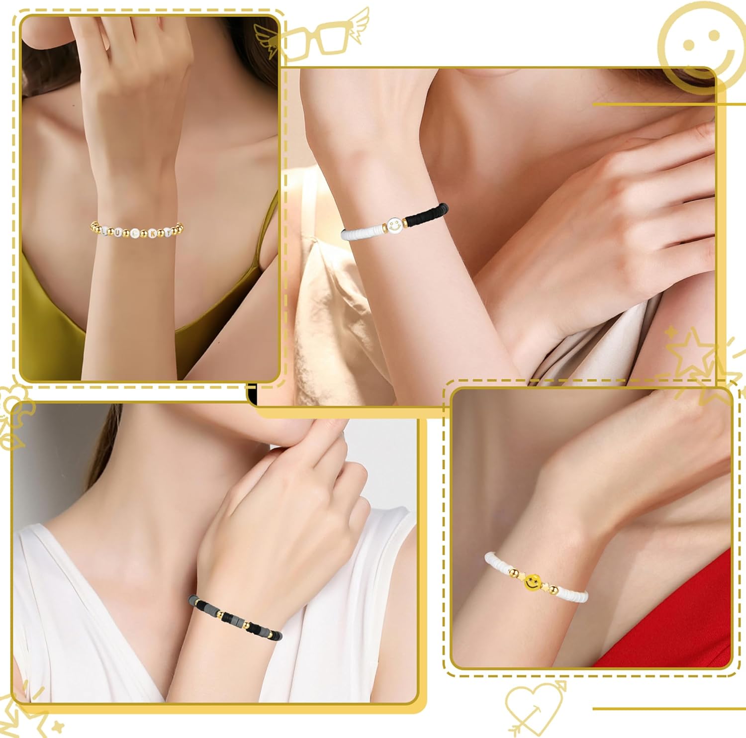 - Materials: This bracelets made of premium soft clay and acrylic material, non-fade, not easy to break, waterproof, non allergic, lightweight, durable, which is comfortable for wearing.