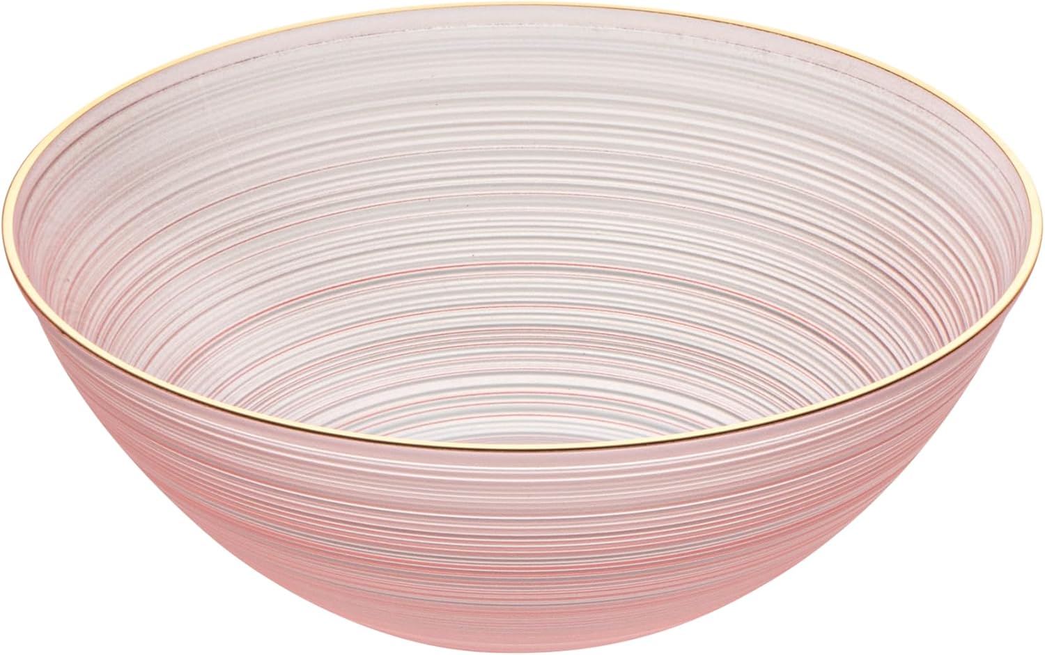 Restaurantware Plastic Bowls 20 Pcs 16 oz Gold Rimmed Disposable Soup Bowls Heavy-Duty Pink Translucent Rippled Dinnerware Containers for Party, Desserts, Salads, Snacks, and Catering