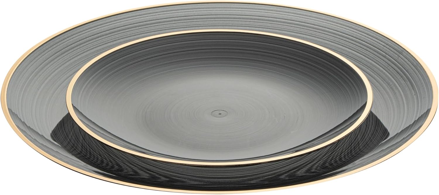 Restaurantware Plastic Plates 200 Pcs 7.13" and 10" Combo Gold Rimmed Plate Set Disposable Heavy-Duty Black Translucent Rippled Plastic Dinner Servers for Party, Weddings, Salads, Desserts