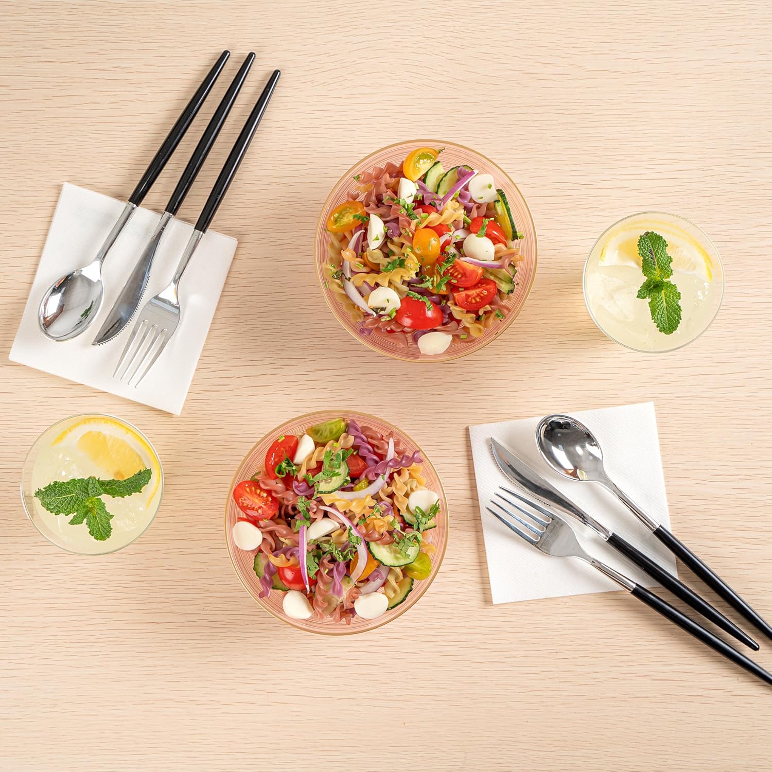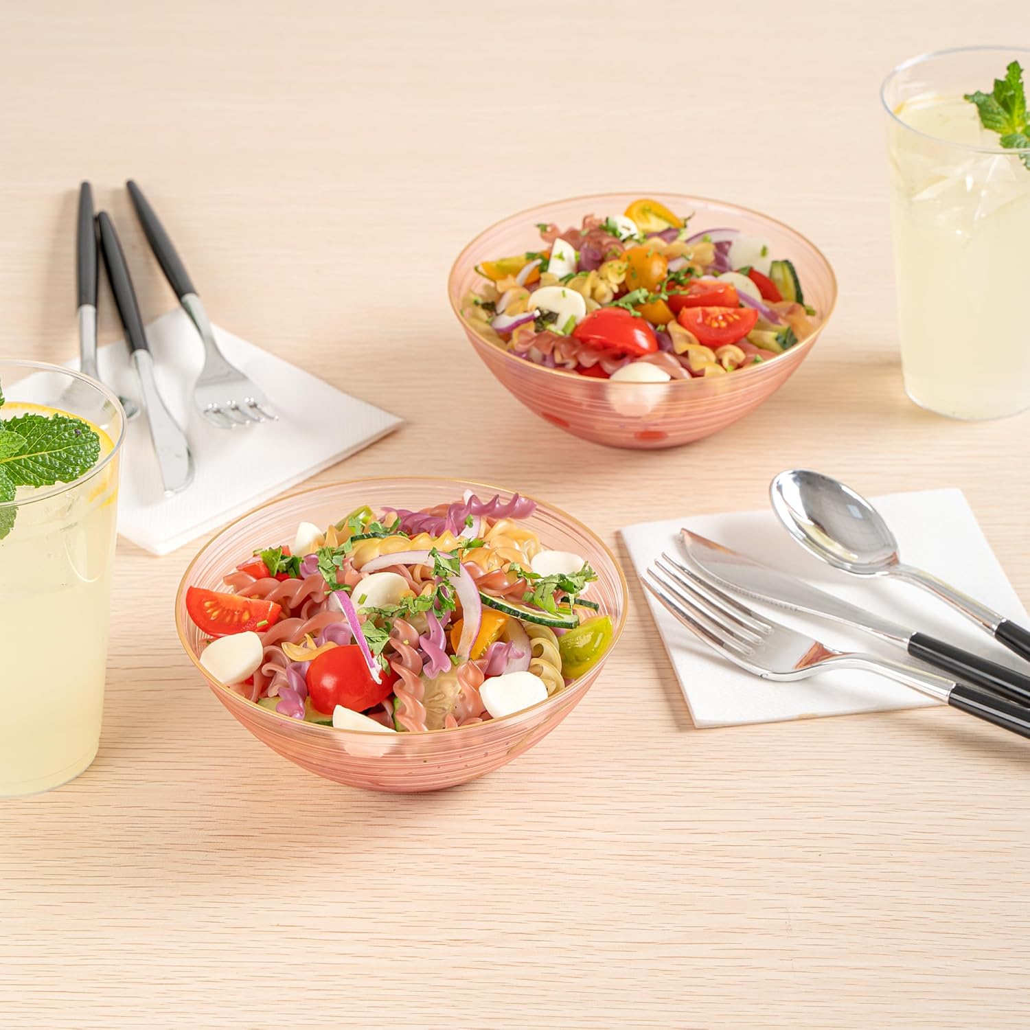 - CONVENIENT BULK PACK: This set includes 100 disposable bowls, providing ample supply for parties, weddings, or any event where you want to impress with elegant disposable plates.