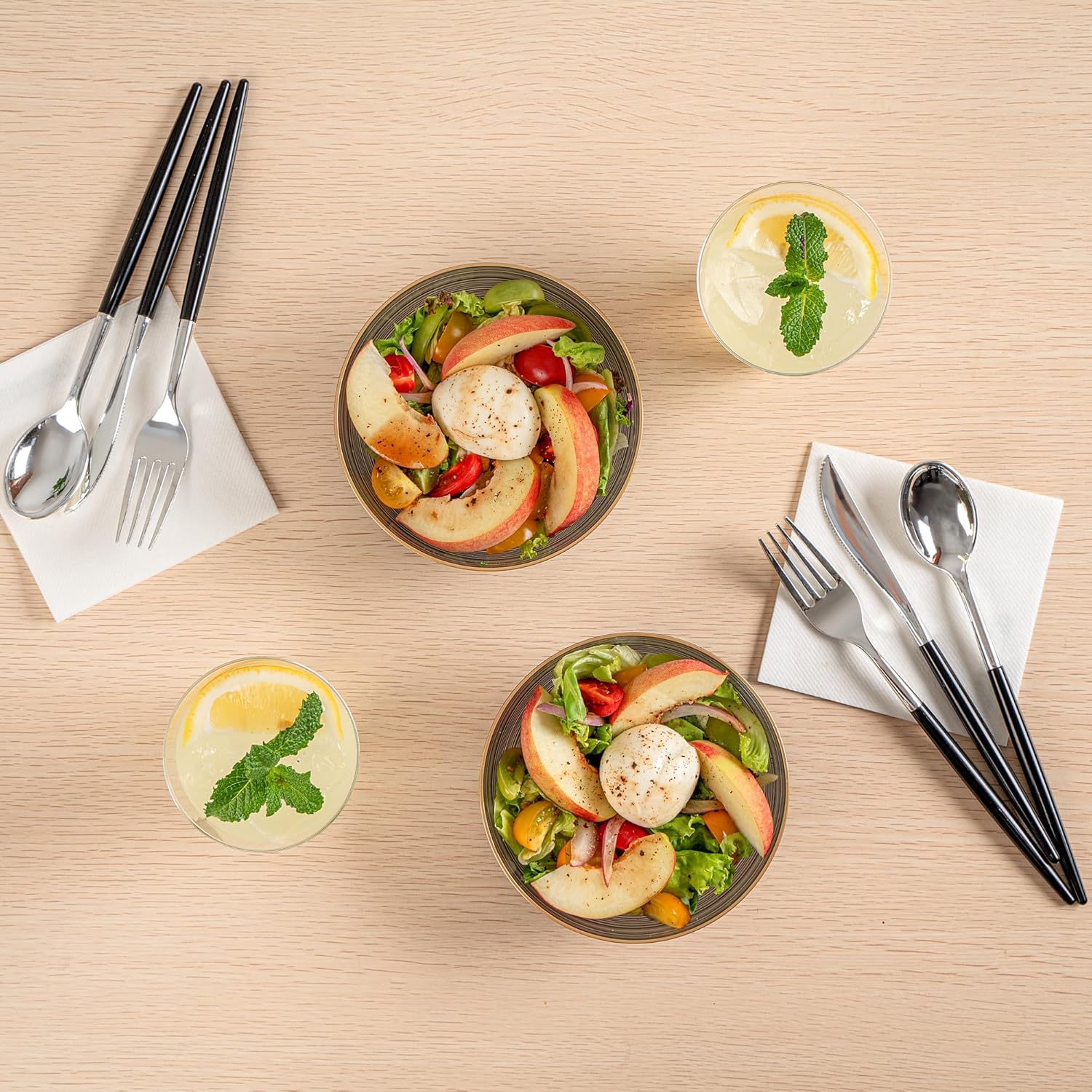 - CONVENIENT BULK PACK: This set includes 100 disposable bowls, providing ample supply for parties, weddings, or any event where you want to impress with elegant disposable plates.