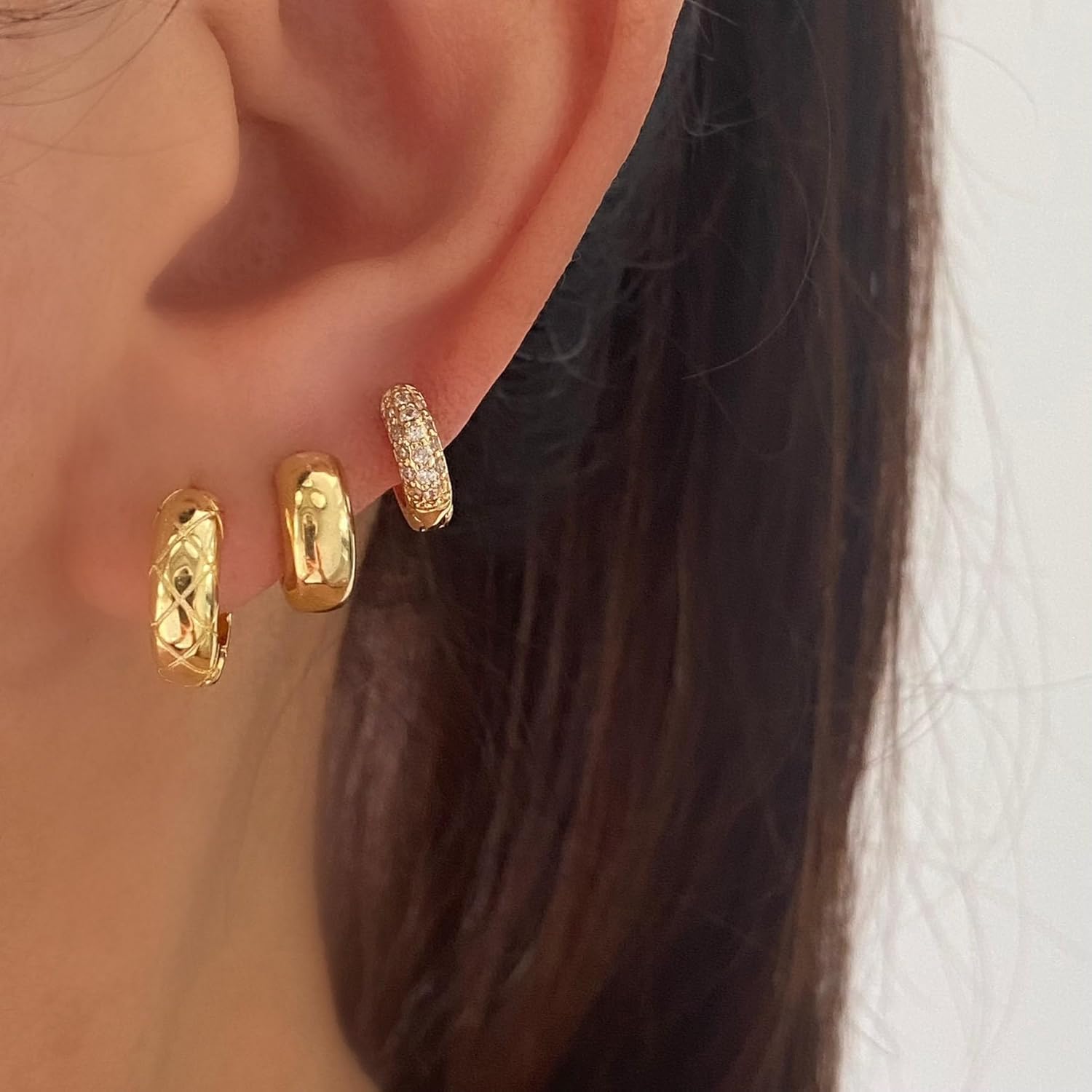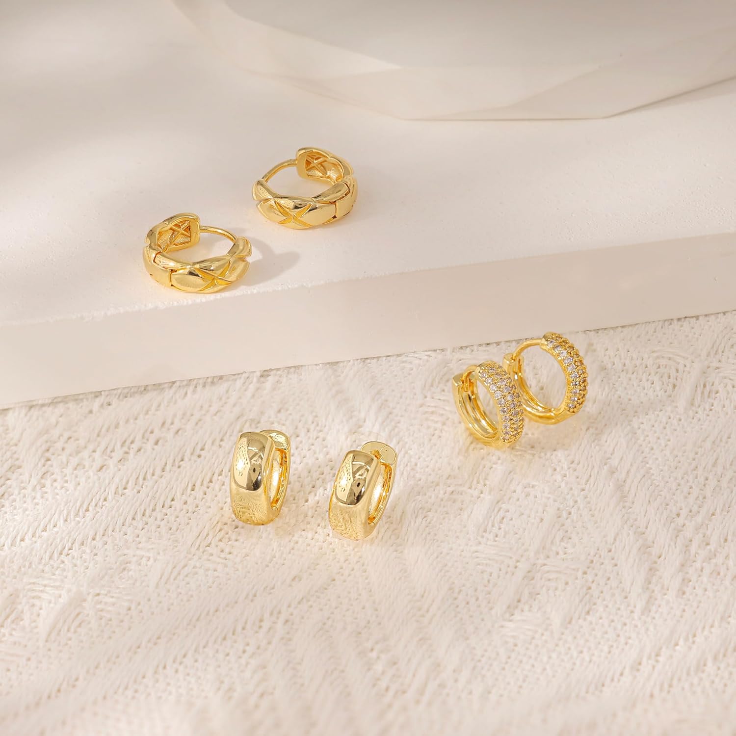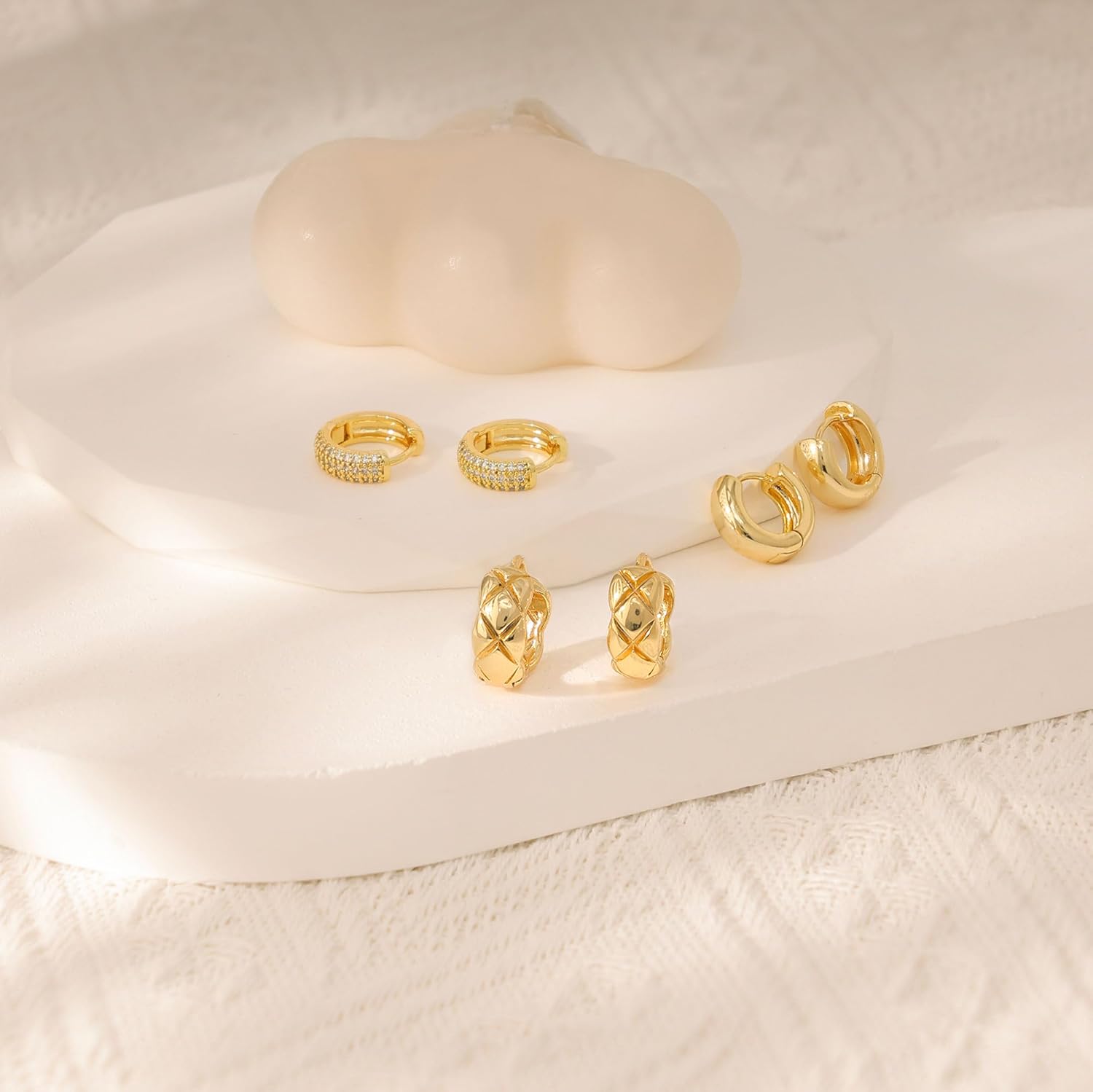 - High Quality Gold Earrings: This gold hoop earrings set is made of high quality brass with 14k gold plating, ensuring long lasting durability while keeping the hoop earrings shiny for a long time, Hypoallergenic earrings for sensitive ears, cute hoop earrings for women are elegant