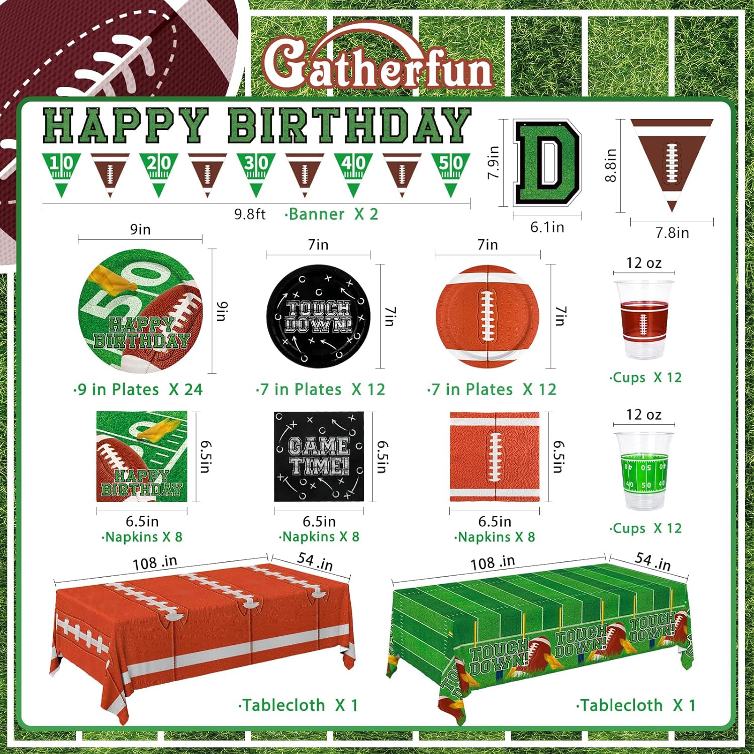 Football Birthday Party Decorations Kit for 24: Football Party Supplies Set with Plates, Dessert Plates, Napkins, Cups, Banner & Touchdown Tablecloth - for Football Tailgate Party Decorations