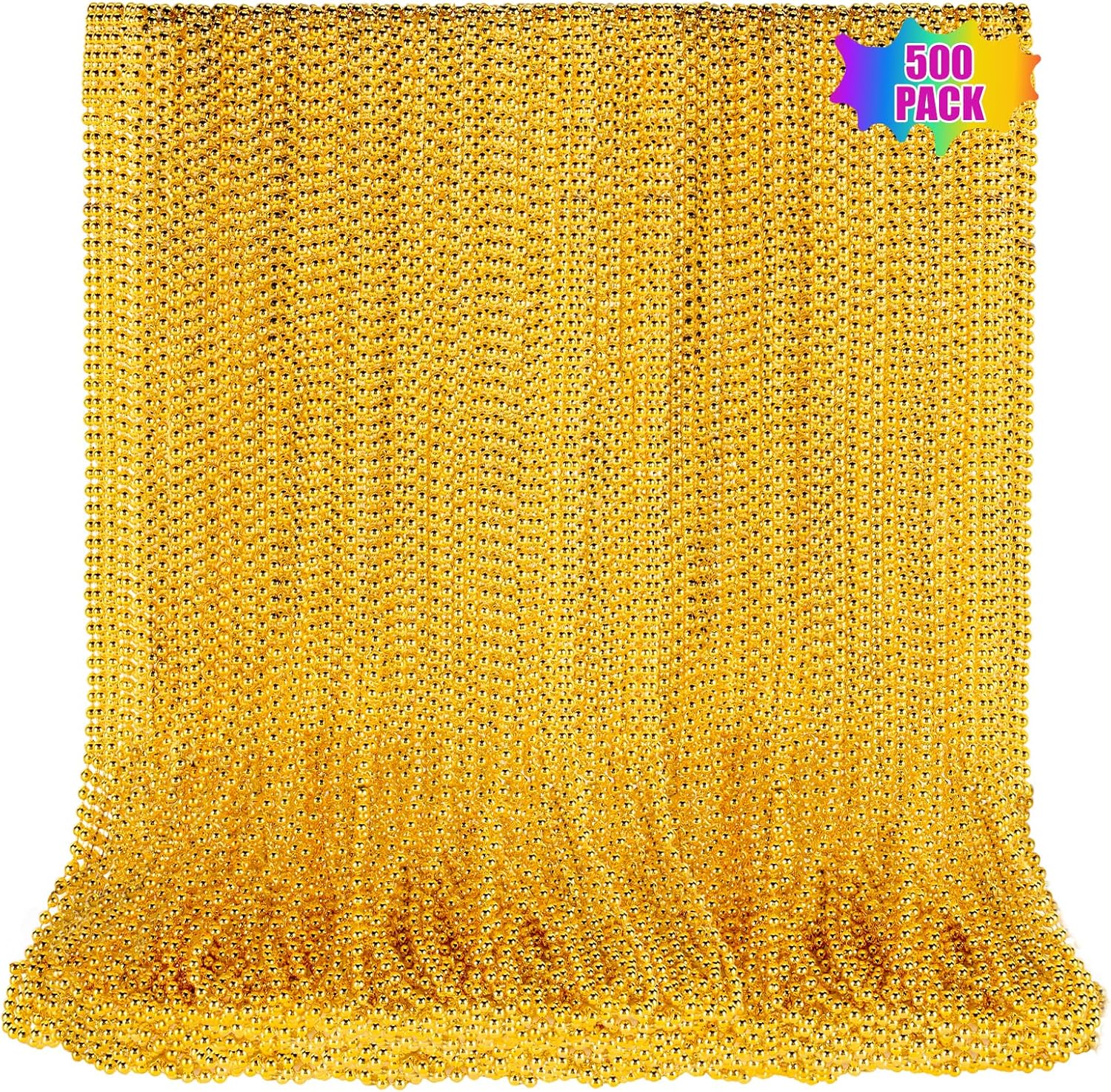 220 PCS Gold Bead Necklace, 33 Inch Mardi Gras Christmas Beads, Bulk Metallic Party Beads for Mardi Gras Parade, St Patricks Day, Wedding, Birthday, Pirate Party, Carnival Party Favors