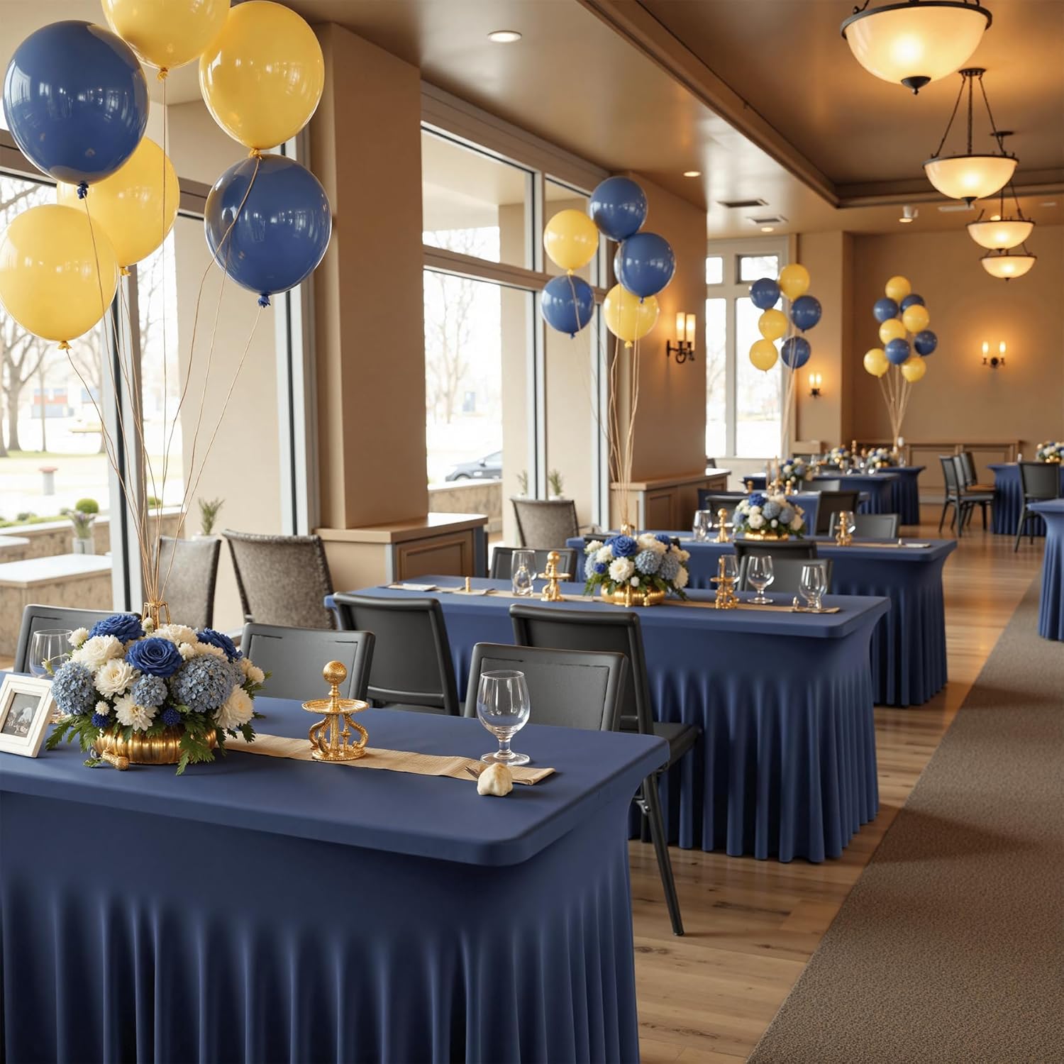 - Why Choose Navy Blue Spandex Tablecloth 8ft - Spandex material is a stretch table cloths for 8 ft tables with high stretchy, wrinkle free, durable and easy to clean, allow table covers for 8 foot tables to be used for a long time while maintaining a good shape. manteles de mesa para fiestas.