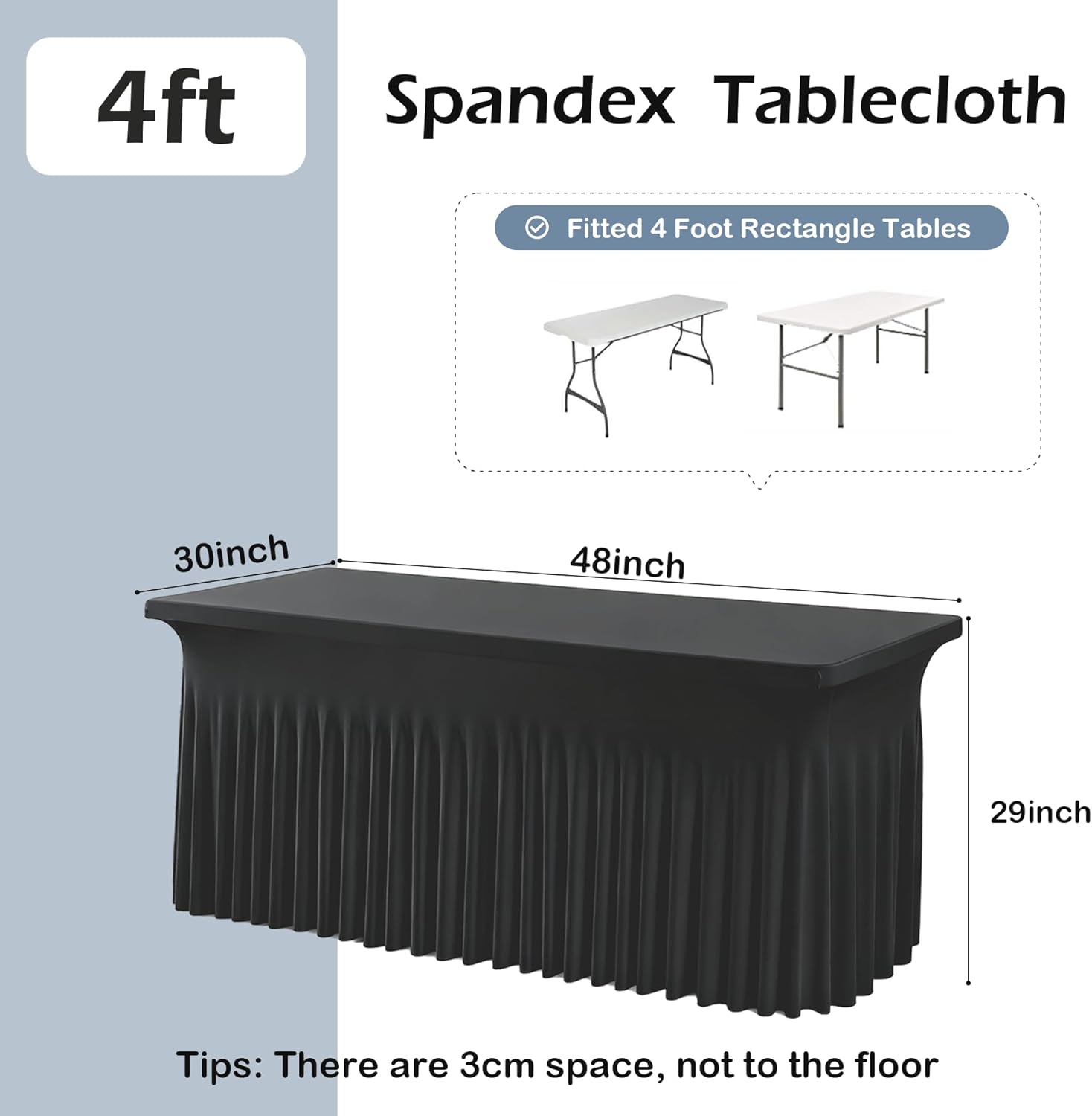 - Why Choose Black Spandex Tablecloth 4ft - Spandex material is a stretch table cloths for 4 ft tables with high stretchy, stretchable, wrinkle free, durable and easy to clean, allow table covers for 4 foot tables to be used for a long time while maintaining a good shape. manteles de mesa para fiestas.