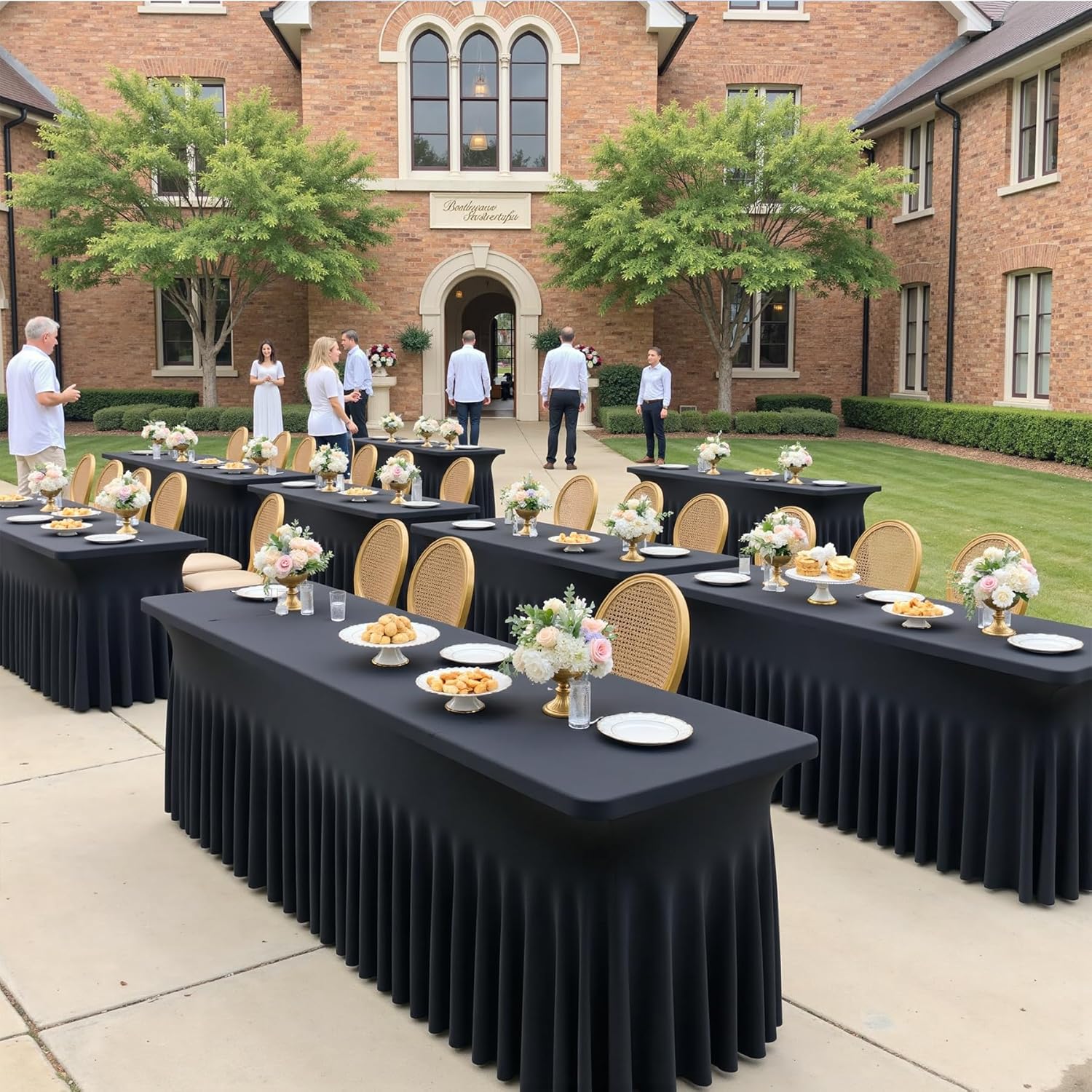 - What You Will Get About the Black Stretchy Tableclothes- You will get 2 Pack black 4ft spandex tablecloths for rectangle tables . Manteles de mesa de tela para fiestas. NSSONBEN has been dedicated to party supplies for many years, select us, select professional.