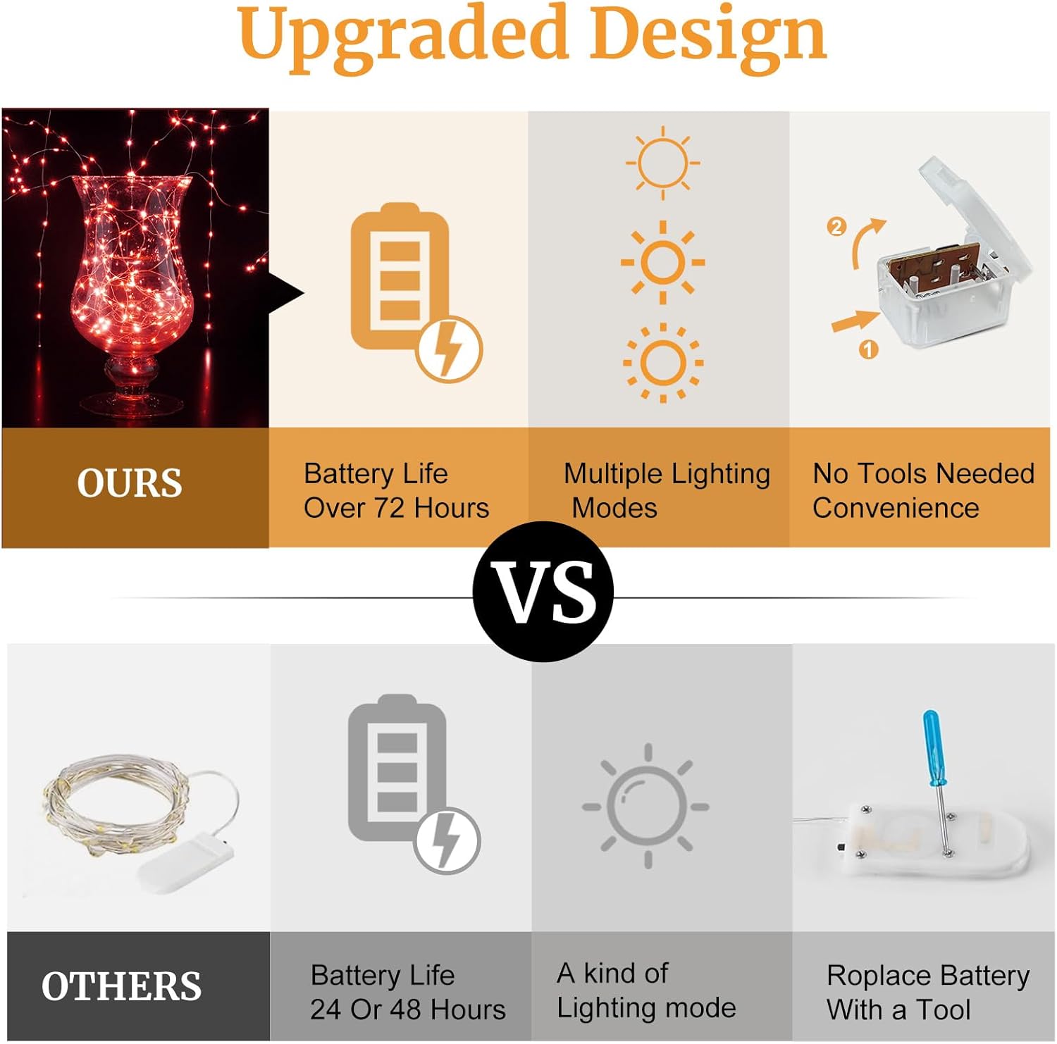 - 【3 MODES & WIDELY USE】-- Three different lighting modes, including flashing, fast flashing and steady on.It's very easy to operate and can meet all your different demands, can be used for Christmas,Holiday, Halloween, Valentine's Day, Wedding,Birthday Parties,Bedroom and Table decorations.