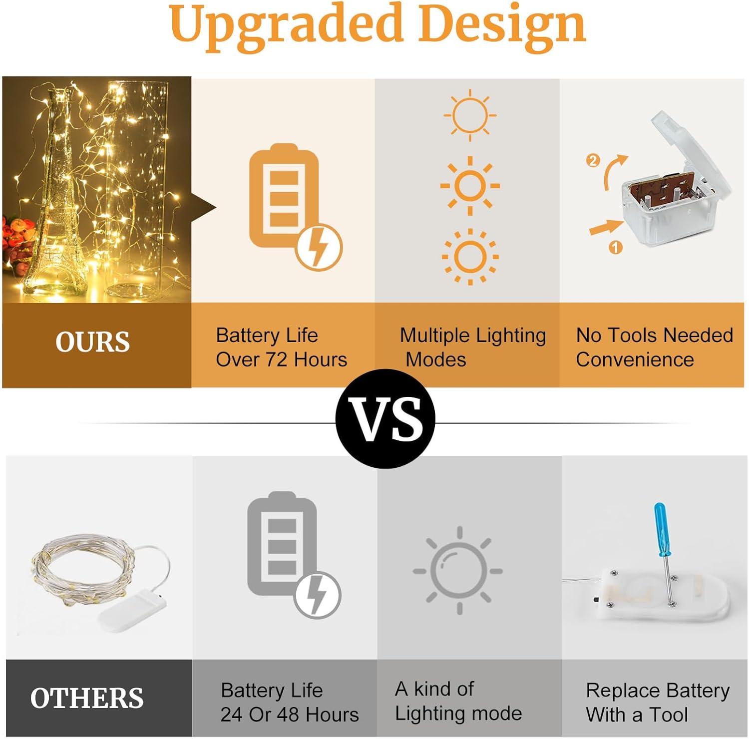 - 【IP65 WATERPROOF STARRY LIGHTS】-- These battery powered string can be used indoors and outdoors without worrying about moisture or weather damage. Fairy lights are perfect for anyplace, including water,ice cubes,vases,snowman,pool,crafts and more. Note: Only the string lights is waterproof, the battery pack is not.