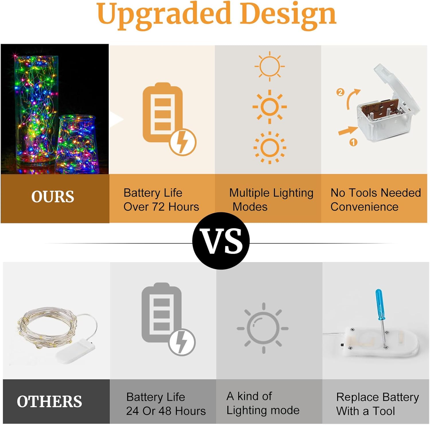 Aogist 50 Pack Fairy Lights 3 Modes 7ft 20 LED Waterproof,Battery Operated Silver Wire Firefly Starry Moon Mini String Lights for Mason Jars Christmas DIY Crafts Wedding Party Bedroom,Multicolor