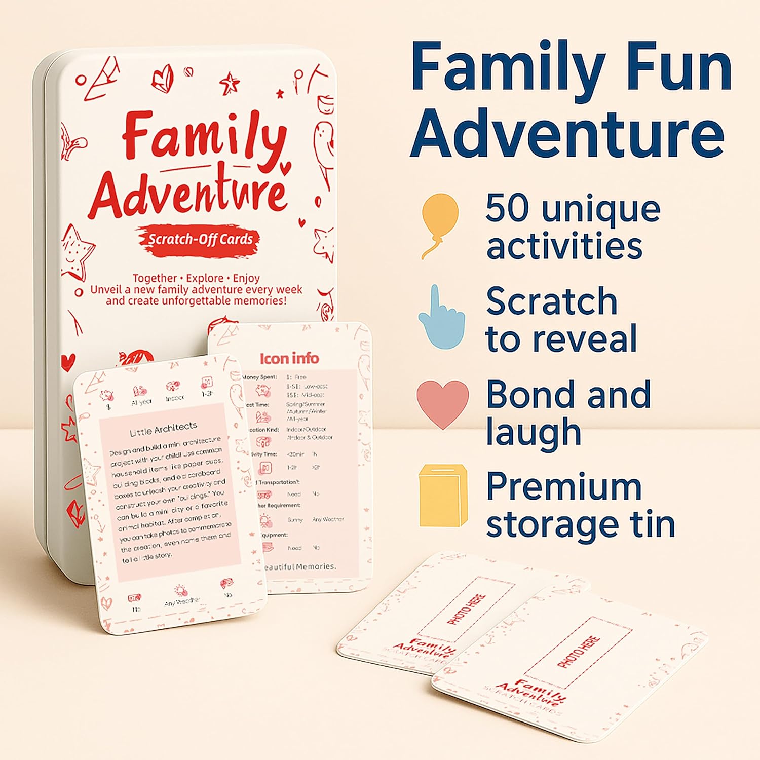 Family Card Game – Scratch-Off Challenge Party Game for Adults & Kids Interactive Trivia, Tasks & Icebreaker Activities Fun Board Game Alternative for Game Night, Travel