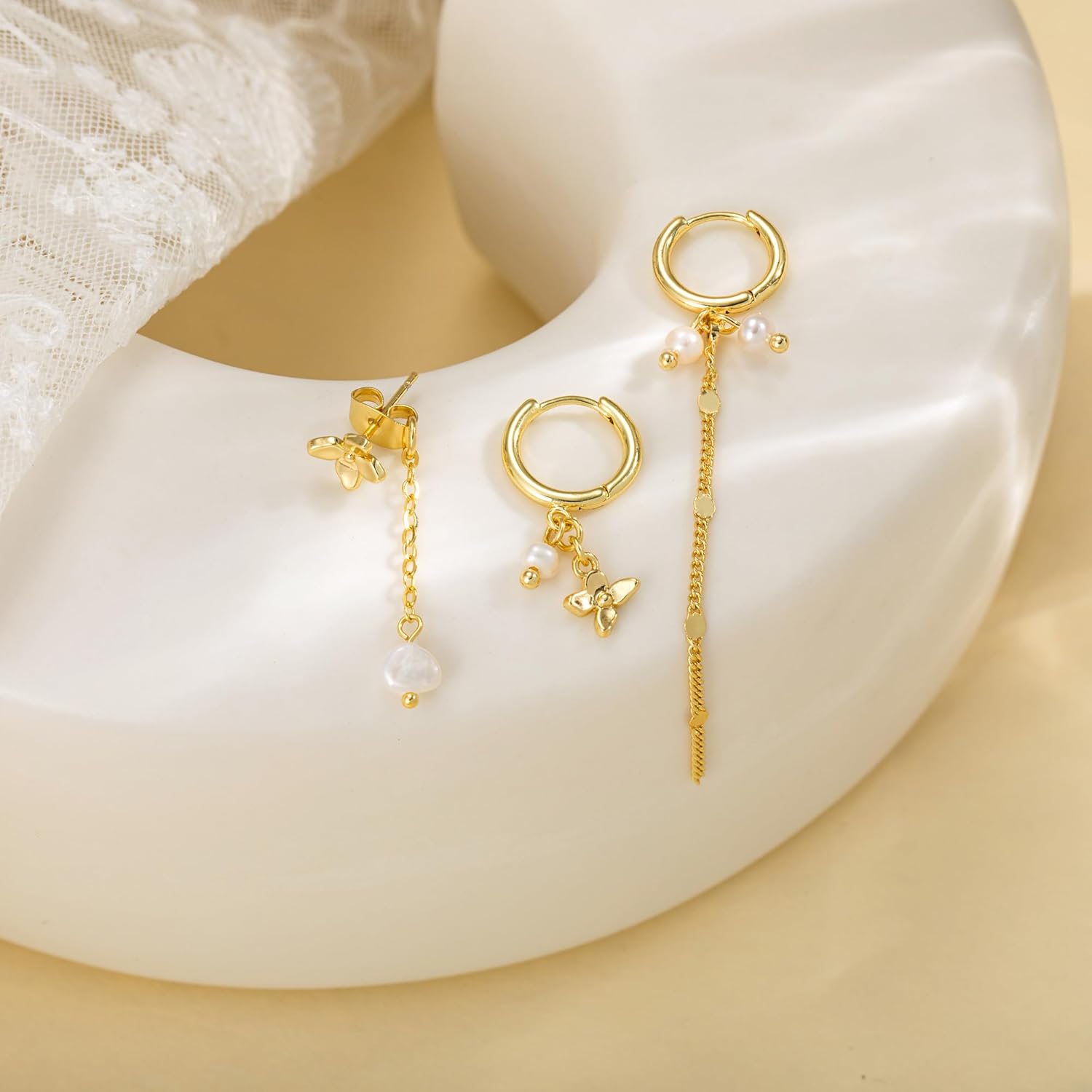 - ๐ Dainty Pearl Earrings Set: Gold pearl drop earrings set โ a stylish and versatile accessory that effortlessly elevates any outfit. This pearl hoop set includes 3 pairs of earrings: 2 pairs of pearl dangle hoop earrings and 1 pair of small stud earrings
