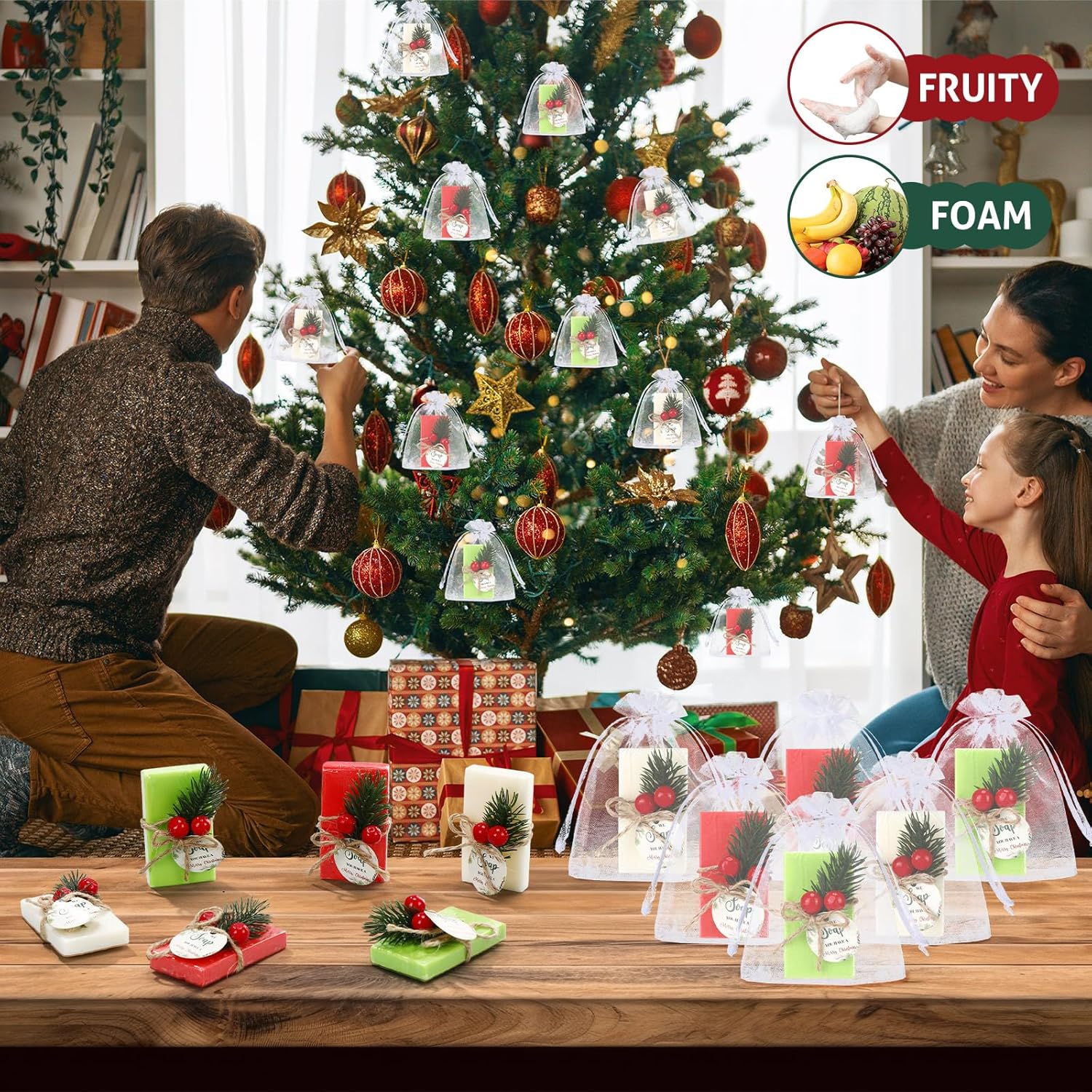 - Christmas Soap Gift Bulk: the package includes 48 handmade bar soaps decorated with berries and green leaves, 48 holiday gift tags, and 48 white gift bags; These accessories make your Christmas soaps beautifully packaged and ready to send to your party guests