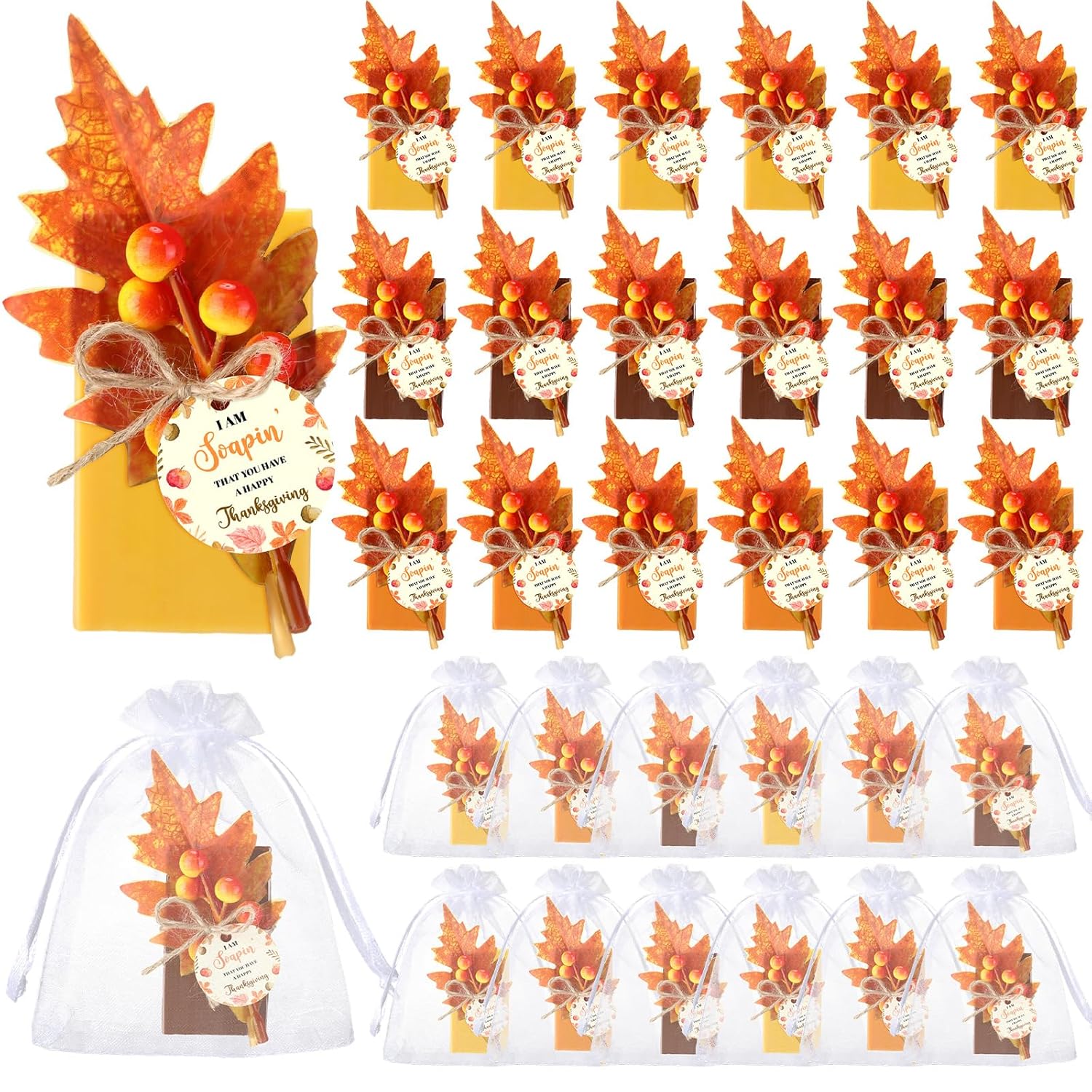 24 Set Fall Thanksgiving Soap Bar Party Favors Handmade Mini Soap Bar Bulk Guests Return Gifts Baby Shower Favors for Wedding Baby Shower with Thank You Fall Leaves Bag