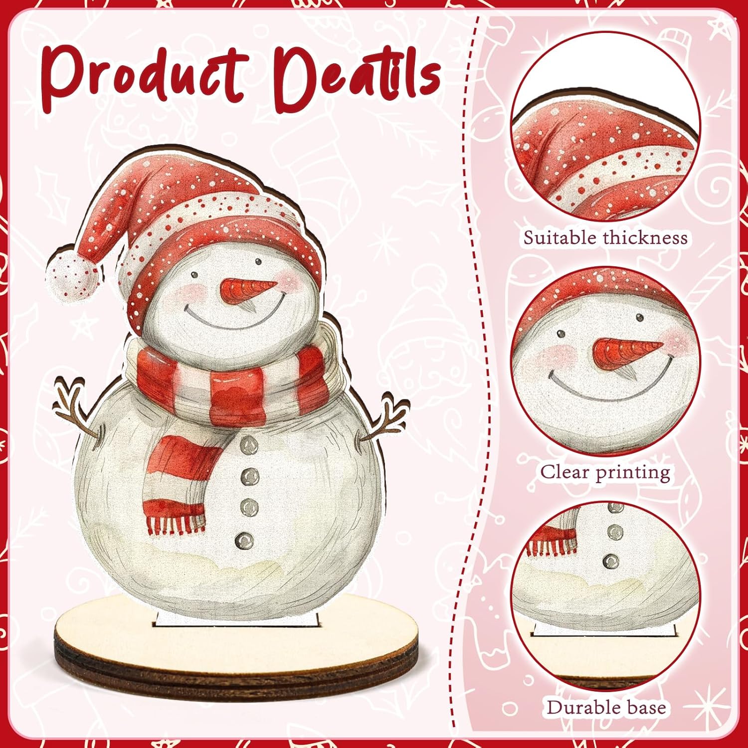 16 Pcs Wooden Classic Christmas Table Centerpiece Vintage Watercolor Xmas Tabletop Detachable Sign Farmhouse Snowman Deer Santa Table Toppers Display Decor Birthday Photo Props Party Favor Supplies