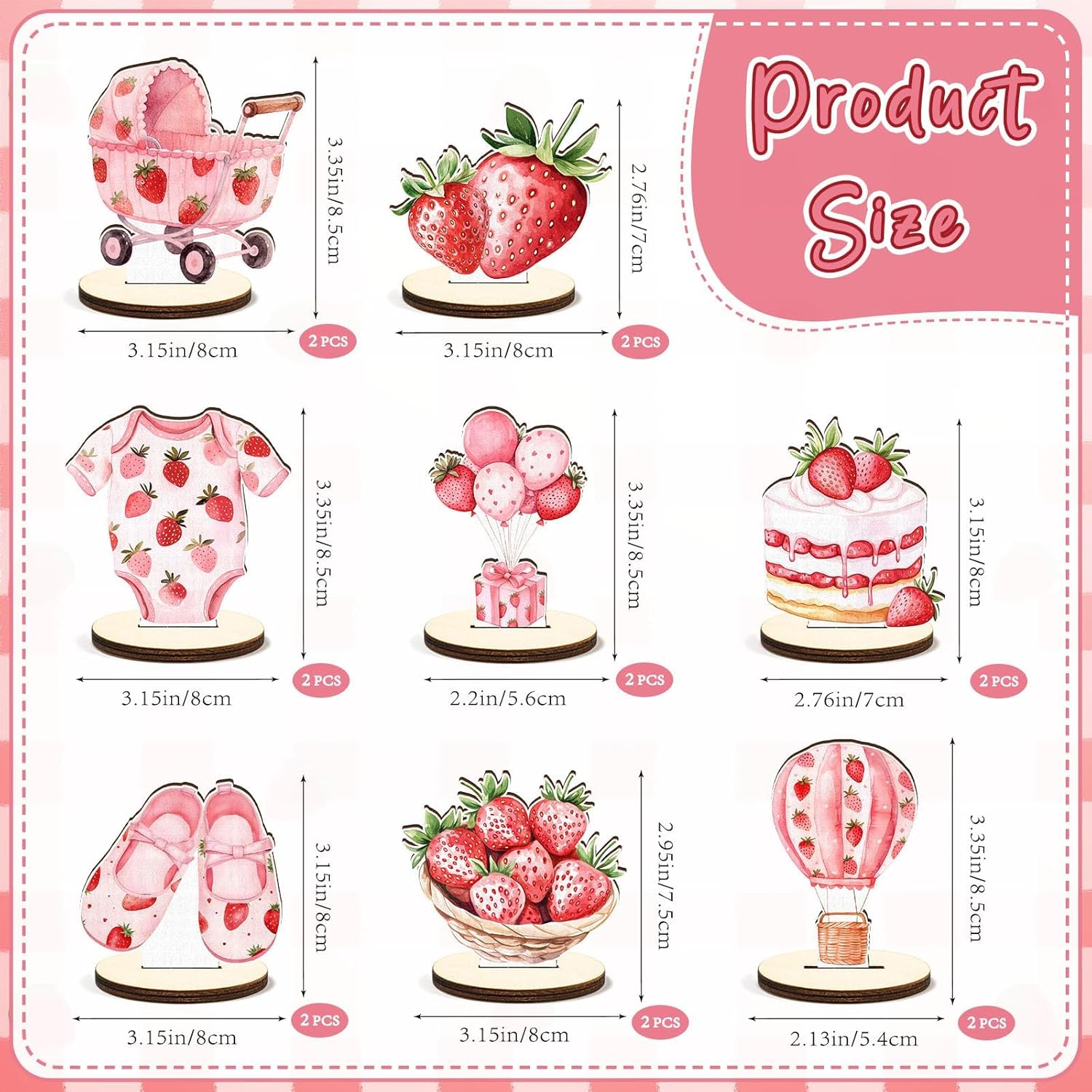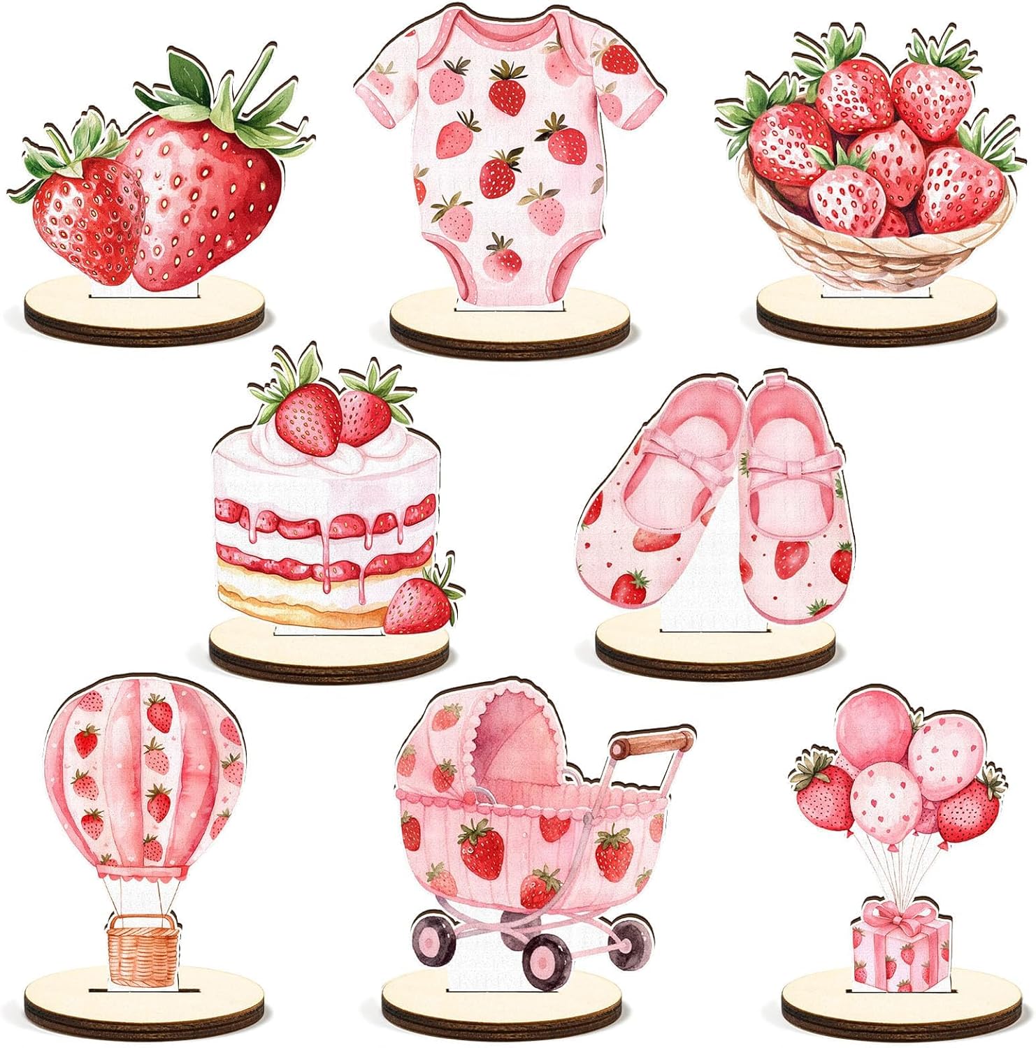 - Strawberry Baby Shower Table Centerpieces Set: You will get 16 pcs wooden strawberry cutouts (8 styles, each style 2 pcs), sufficient quantities can meet your diversified decoration and matching needs, cute design can easily light up your strawberry theme baby shower birthday party.