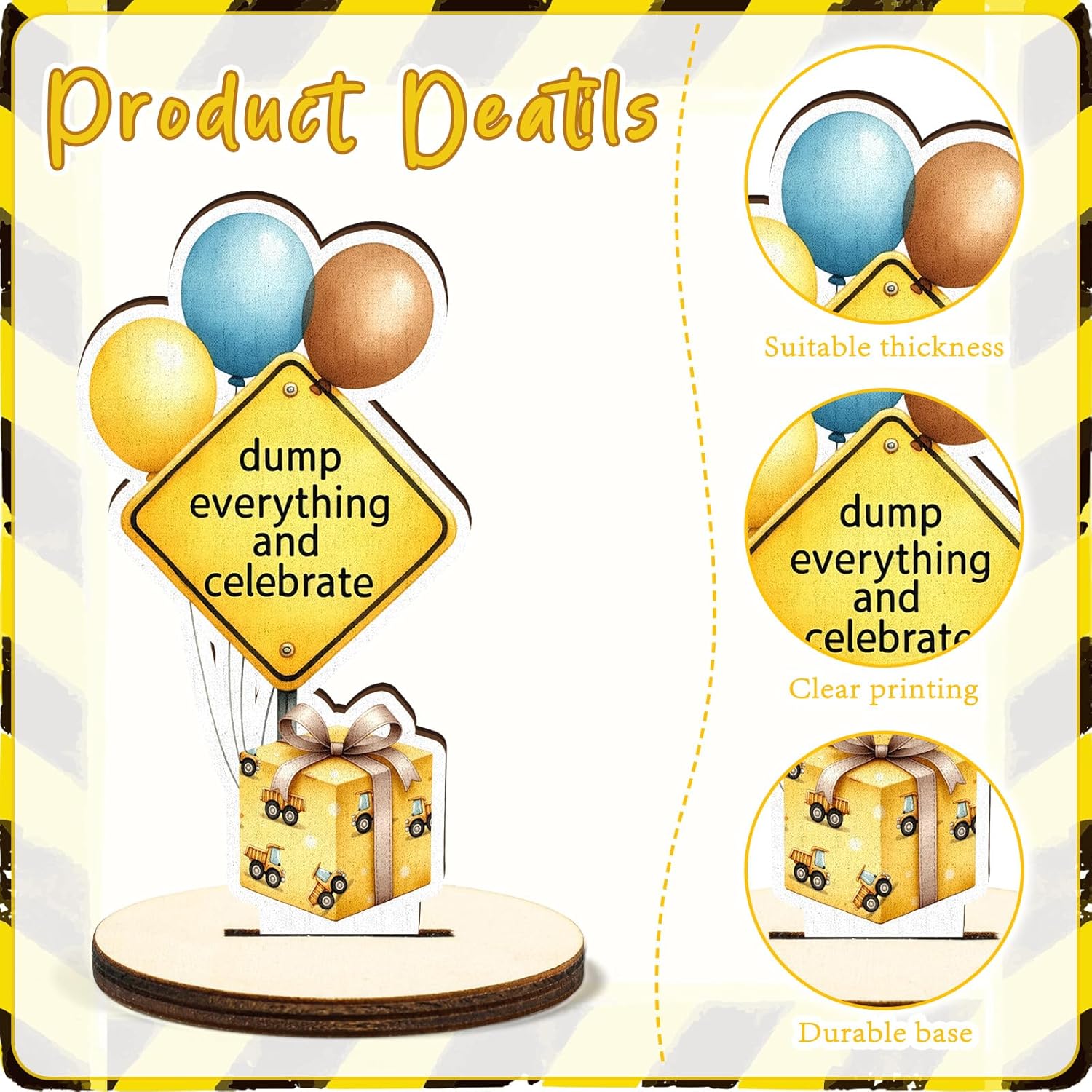 - Reliable Material: These construction birthday party signs table decorations are mainly made of wood material, which is safe for you to use, can accompany you for a long time, and each of the ornament is designed with a wood base, to keep them stand stably on your table, they are suitable for construction party, traffic road sign party, birthday party or any other holiday celebration event.