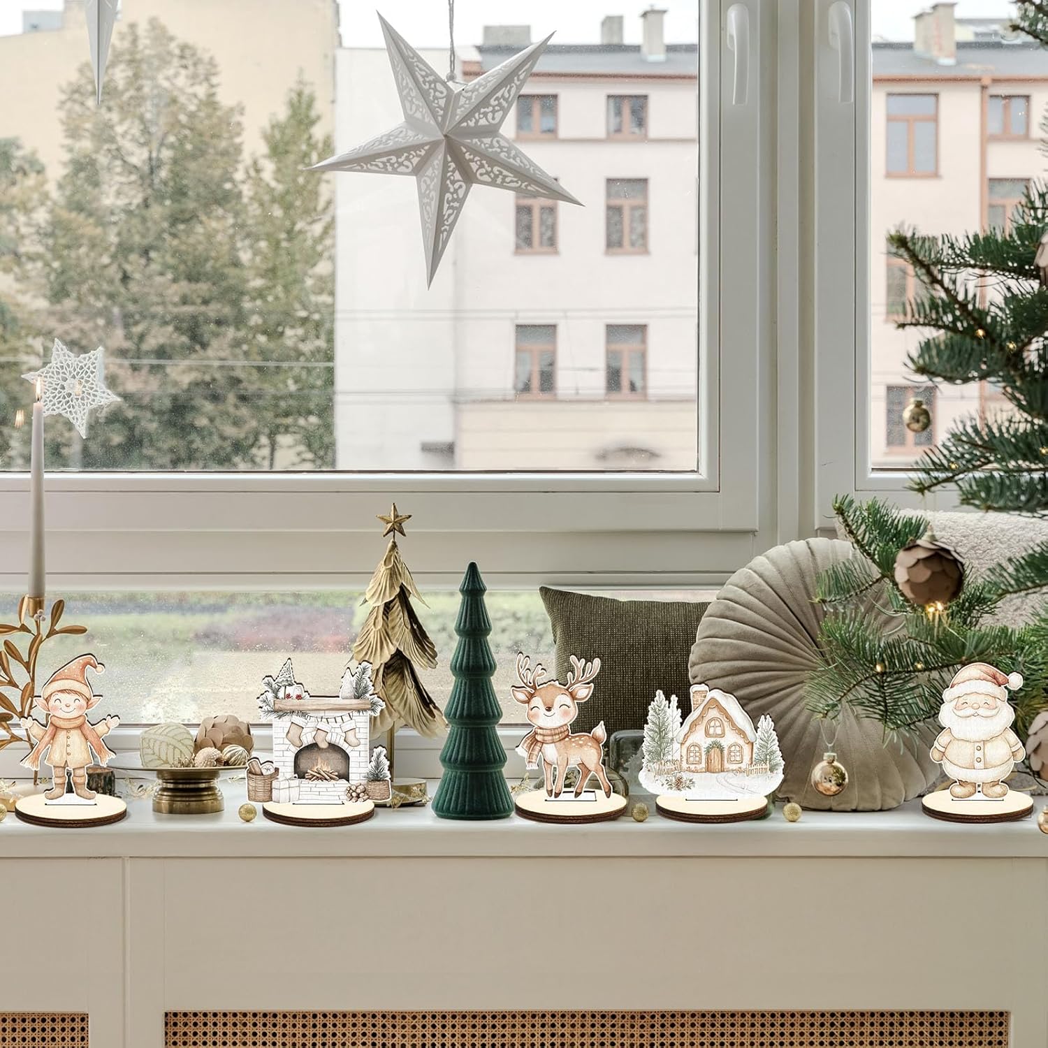 - Classic Boho Sad Beige Christmas Table Centerpiece Set: You will get 16 pcs wooden Christmas cutouts (8 styles, each style 2 pcs), sufficient quantities can meet your diversified decoration and matching needs, cute design can easily light up your vintage theme baby shower birthday party.