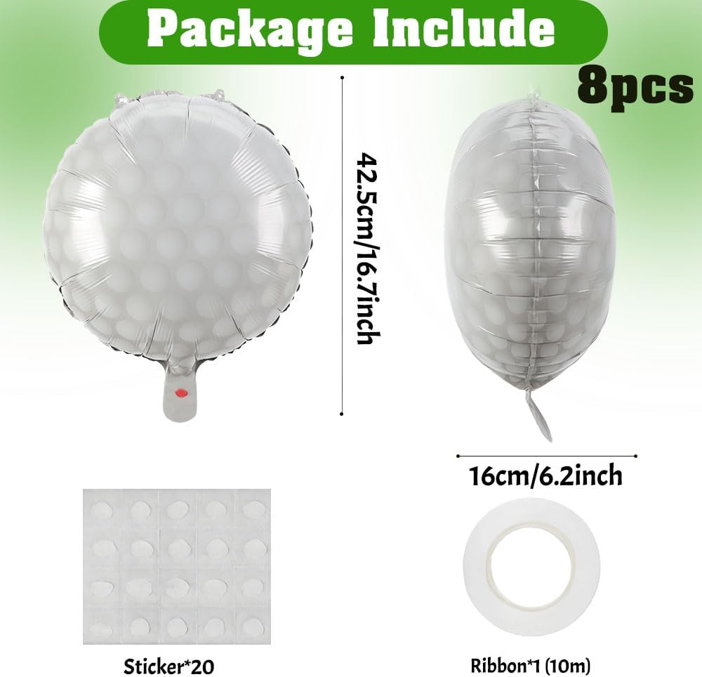 - PACKAGING INCLUDES: The golf balloons golf themed party decorations happy birthday balloon set comprises eight 18 inch foil balloons. When inflated, each helium balloon pearl white balloons measures 18 inches, providing a striking focal point for any golf themed party, senior night or march madness. The ample quantity ensures sufficient golf birthday decorations golf ball balloons party balloons for birthday party for both decoration and replacement needs.