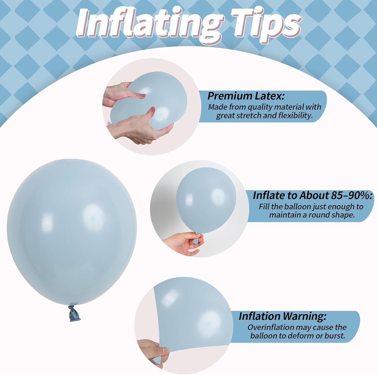 - Helpful Tips: For best results, inflate to 80–90% to avoid popping and keep the balloons fresh longer. These Christmas balloons should be kept away from heat, sharp objects, and direct sunlight. Adult supervision is required when used around children
