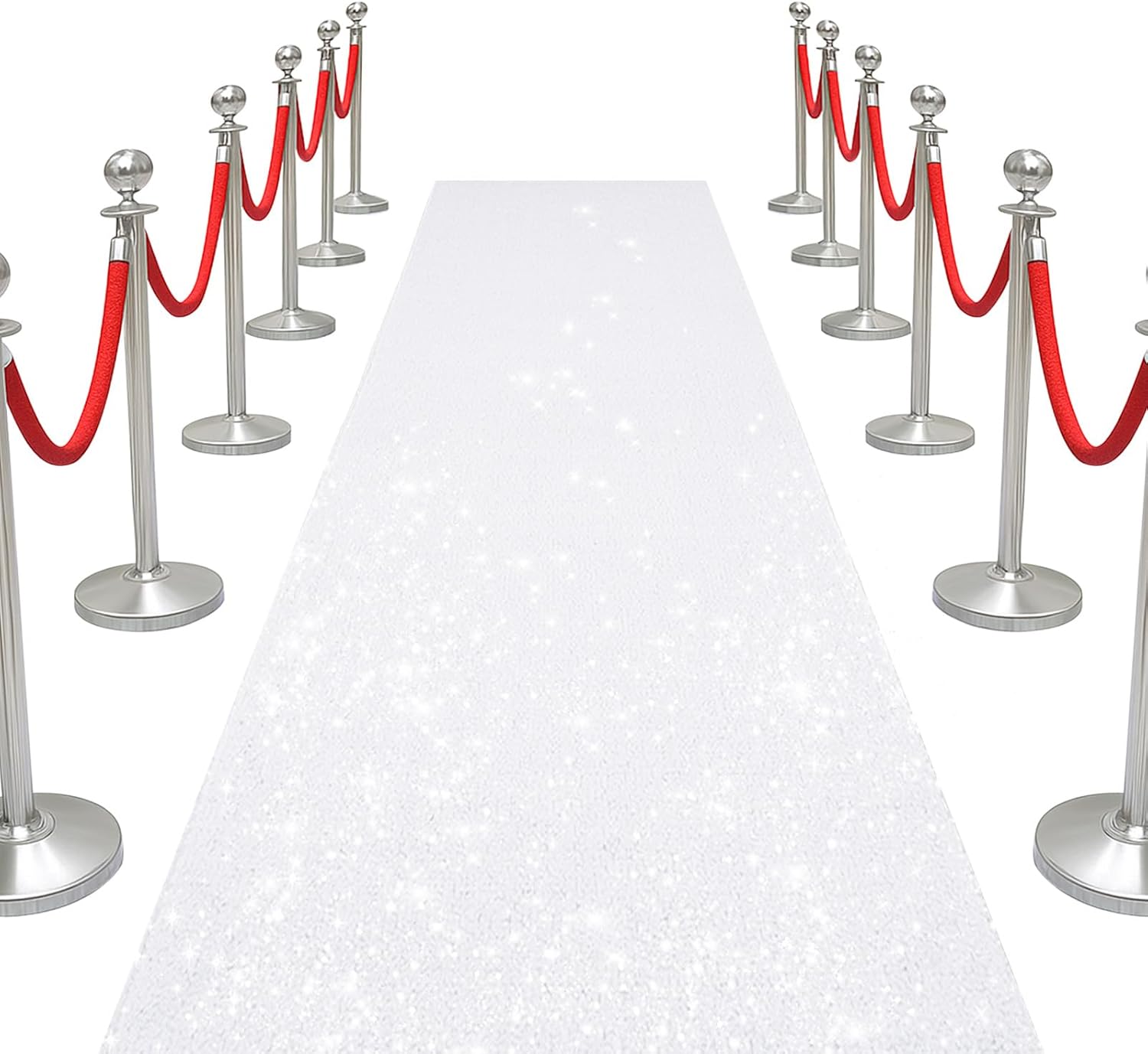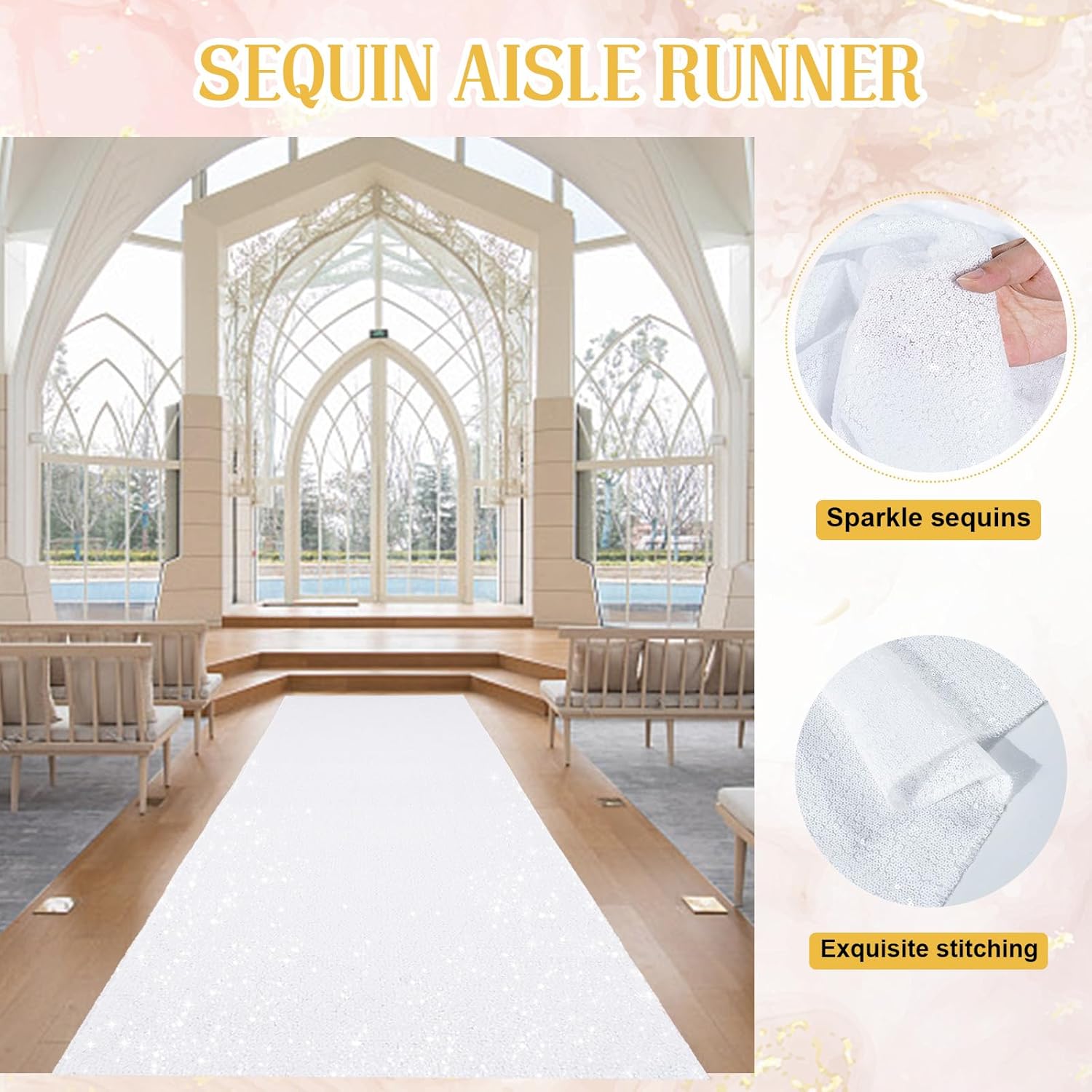 - ELEGANT DESIGN: The Iridescent white carpet runner shimmering sequins reflect light beautifully, adding a touch of sophistication and glamour to any indoor or outdoor event