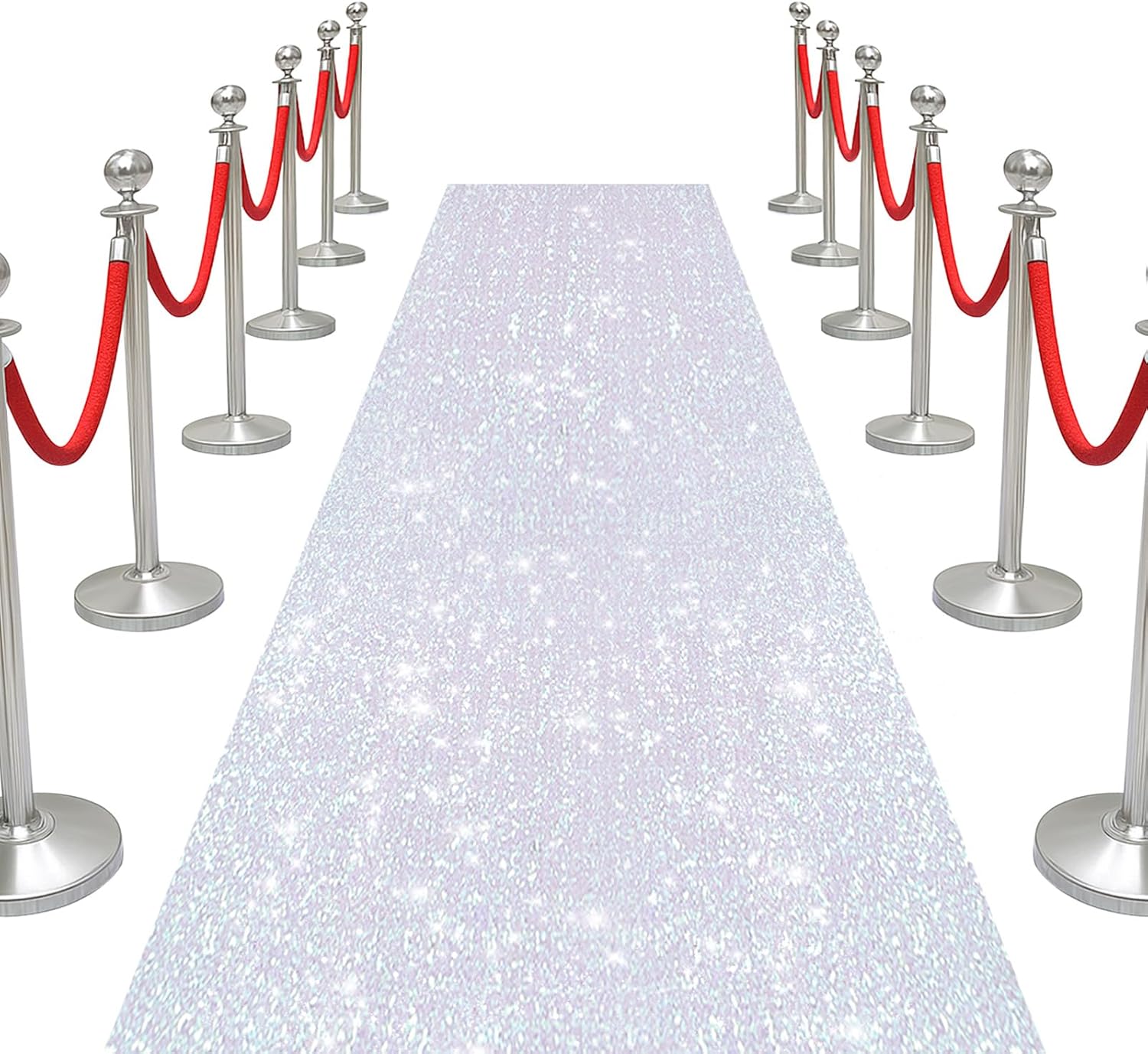 - ELEGANT DESIGN: The Iridescent white carpet runner shimmering sequins reflect light beautifully, adding a touch of sophistication and glamour to any indoor or outdoor event