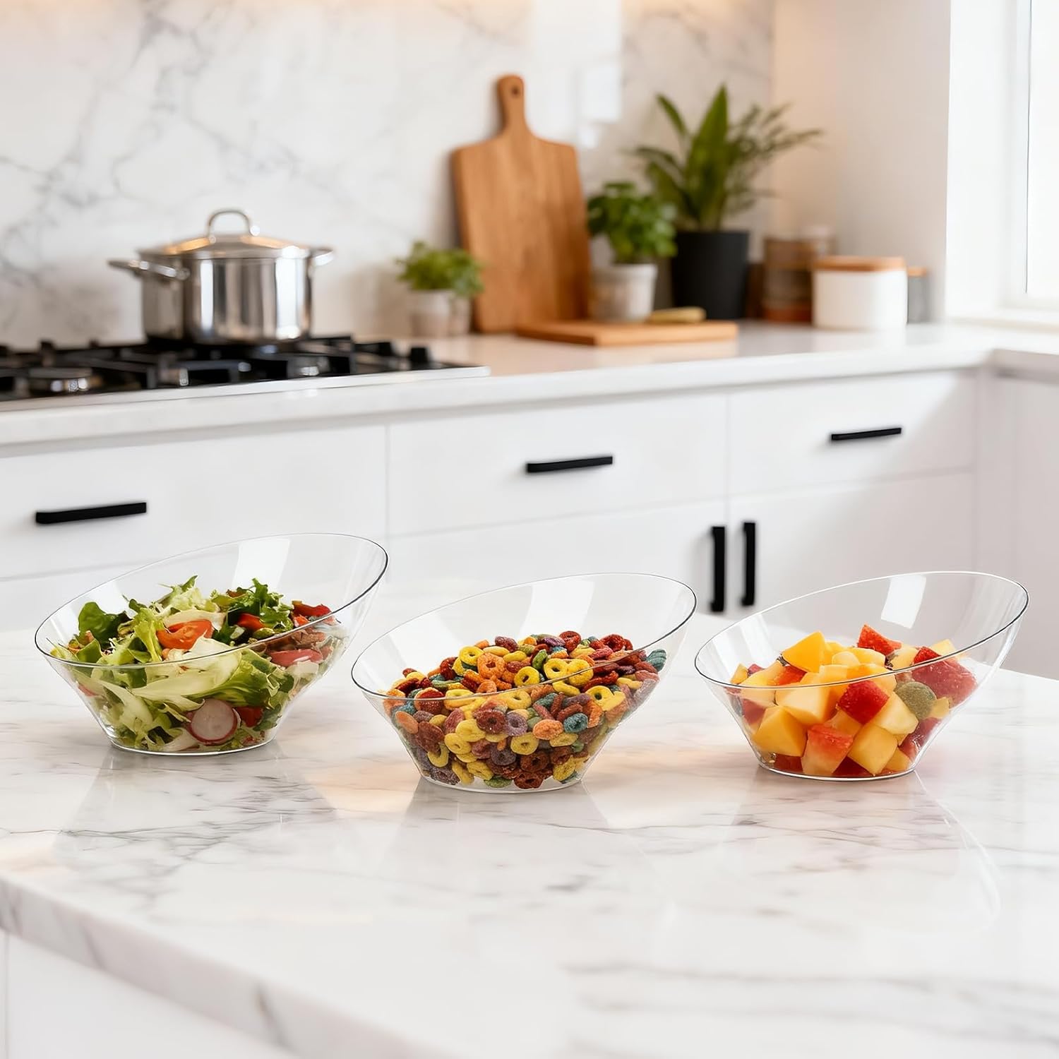 - Versatile for All Occasions:These disposable serving bowls work for daily home meals. Angled plastic bowls also fit Weddings, Halloween, Christmas, Parties, Birthdays, Catering, and more. You can use them as candy bowls, chip bowls, fruit bowls, or salad bowls. They hold both hot and cold foods without losing shape. Entertaining becomes easy and stylish every time