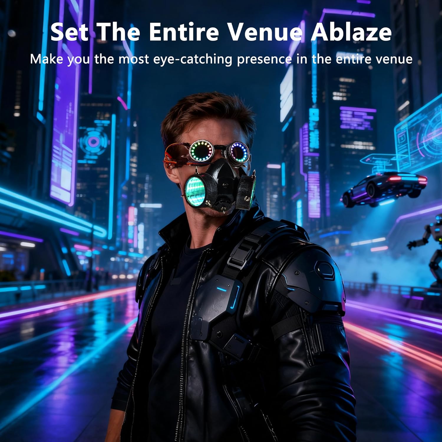 - 【User-Friendly Wear Design】The led sunglasses Features adjustable straps to fit various head and face shapes; The mask's breathable structure ensures smooth breathing, eliminating pressure even during extended wear. Immerse yourself in style expression and scene interaction.