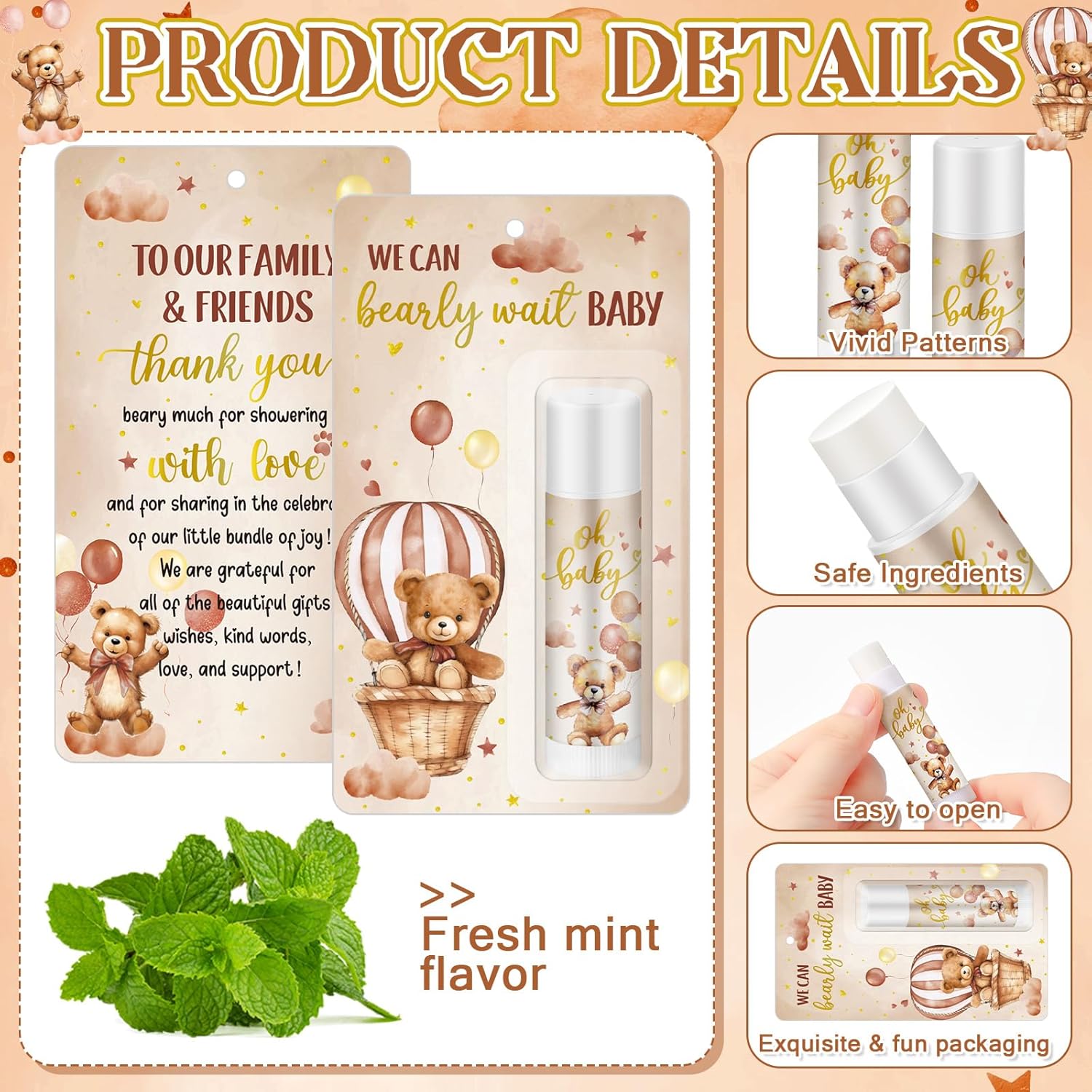 - Versatile Usage: these bear baby shower lip balms are not just for baby shower theme party supplies, They can also be given to your family and friends as a thank-you gift for gender reveal parties, christening parties, and even bridal showers, birthdays, anniversaries, parades, gatherings, relocations, etc. To show your sincere thanks to them