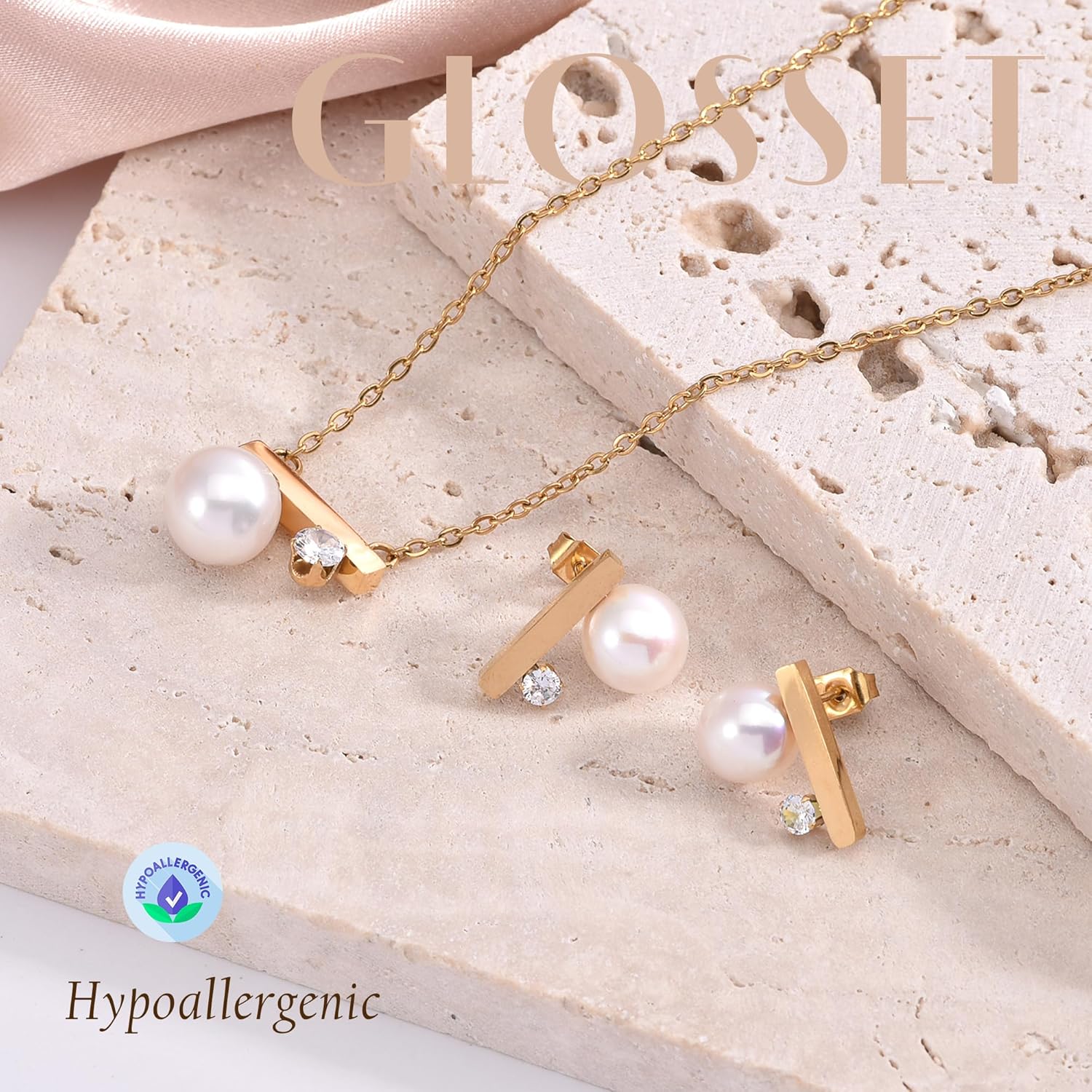 - Safe & Hypoallergenic - Crafted from hypoallergenic, nickel free, lead free, and cadmium free materials, this pearl set of jewelry for women boasts a luxurious gold plated finish over a durable stainless steel base. It is designed for both long lasting wear and sensitive skin, offering durability, tarnish resistance, and allergy free comfort.