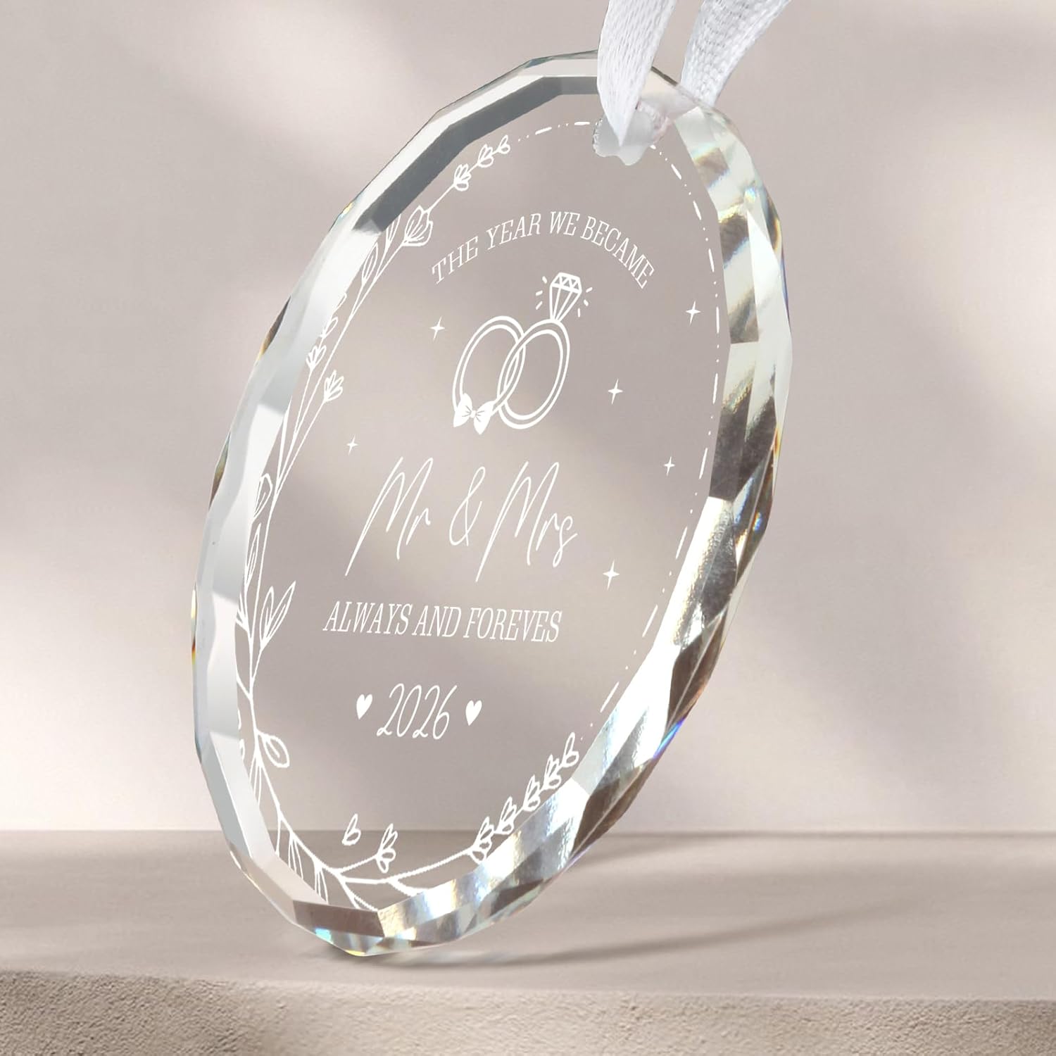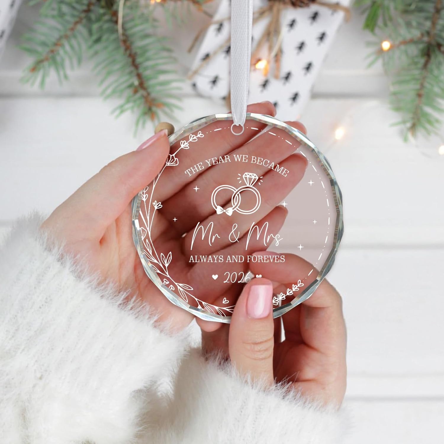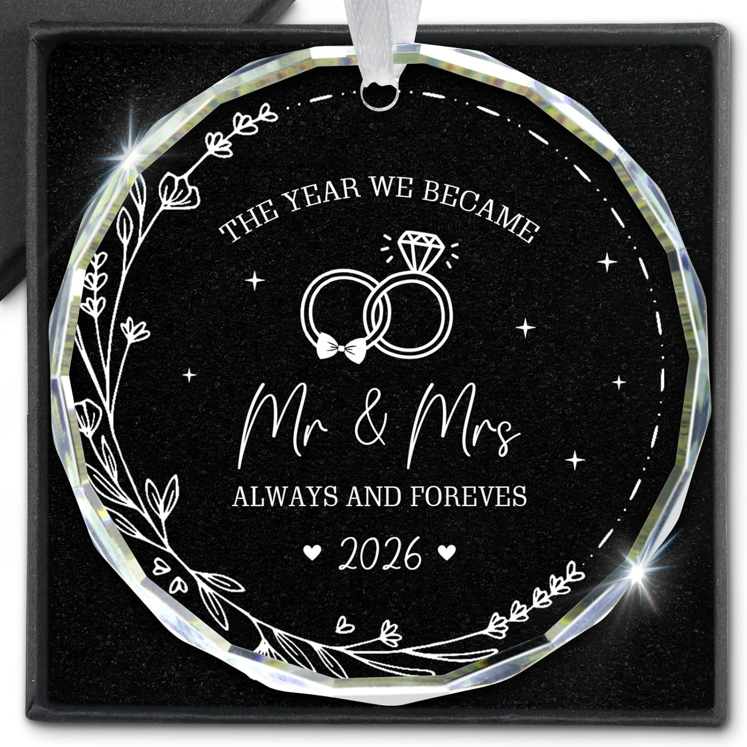 - [Wedding gifts for newlyweds]:The glass ornament engraved words "the year we became Mr & Mrs always and forever 2026" serve as a meaningful tribute, express your deep appreciation and gratitude for those who have influenced in your lives.